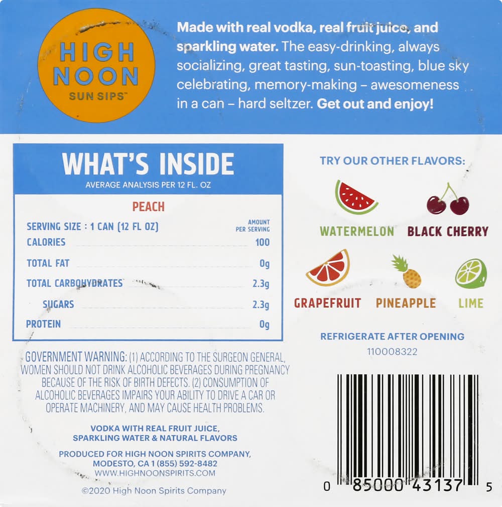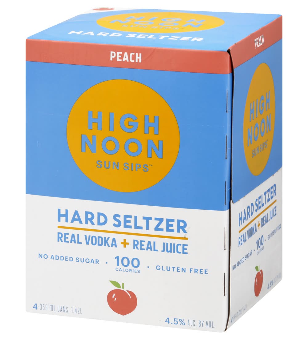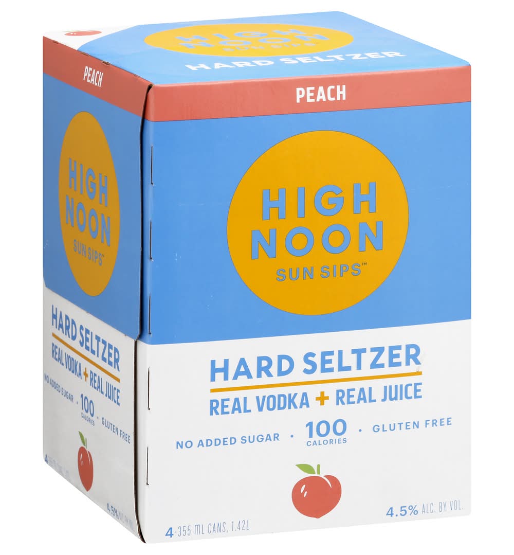 High Noon Sun Sips Hard Seltzer, Peach (4 x 355 ml)