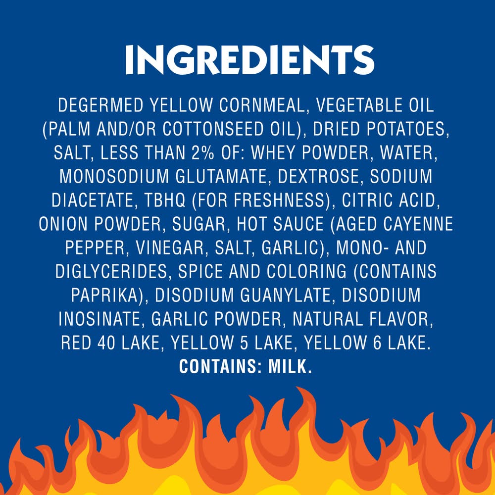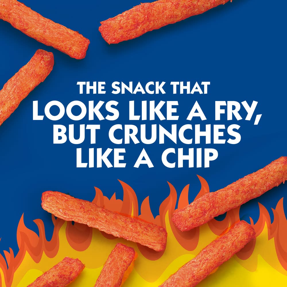 Turn up the heat with Fire Fries Corn and Potato Snacks. These spicy fries are extra hot, packing a powerful fiery punch with every crunch. Switch up your snack routine with the salty snack that looks like a French fry and crunches like a potato chip. These savory snack fries make a great addition to lunches and are a great school snack, work snack or travel snack, or any type of on-the-go snack you can think of. Road trips and dorm room study breaks have never tasted spicier.
