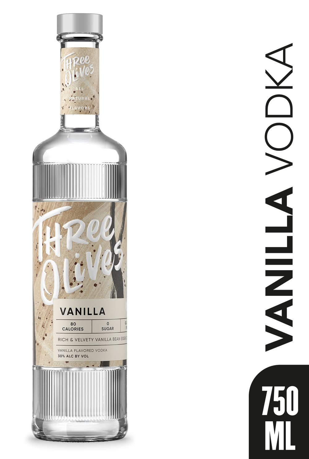 Three Olives® Vanilla Vodka has a sweet aroma and the rich velvety flavor of vanilla bean. Zero sugar, 80 calories and gluten free, Three Olives® Vanilla is perfect in a shot or for any cocktail. (Crafted with all-natural flavors; 30% ABV – 60 proof). At the base of all Three Olives® flavors is an award-winning, premium vodka 5x distilled, yielding an exceptionally smooth vodka that is zero sugar, low calorie, and gluten free. Made in the USA. Alcohol by volume: 35%