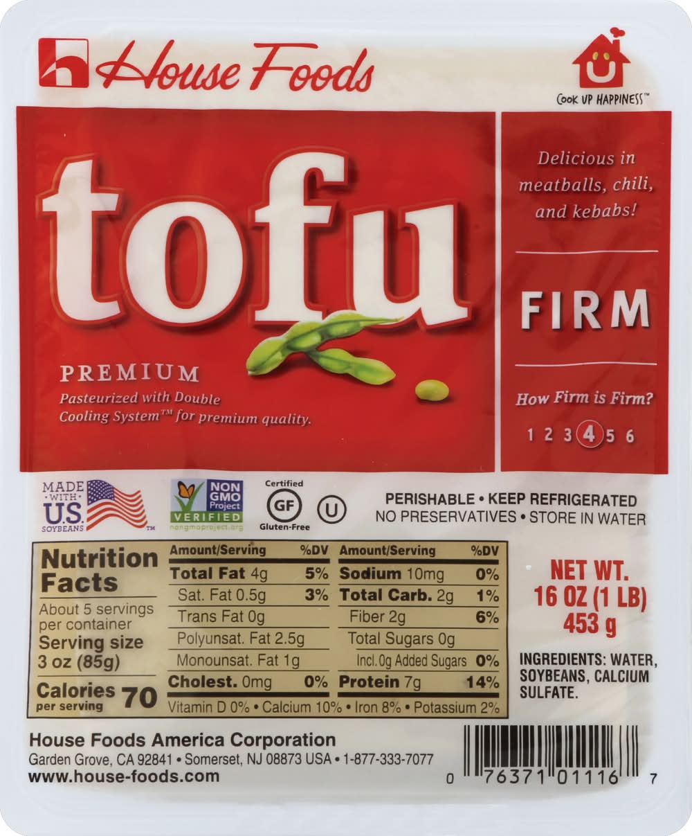 Certified gluten-free. Non GMO Project verified. nongmoproject.org. Pasteurized with Double Cooling System for premium quality. Delicious in meatballs, chili, and kebabs! How firm is firm? 4. Cook up happiness. House Foods, Garden Grove, CA 92841
