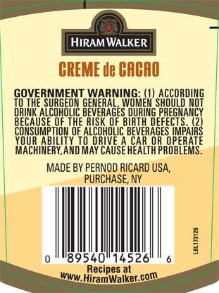 Hiram Walker Crème de Cacao taste is creamy chocolate with notes of toffee and auburn color • Alcohol by volume: 15% • Packaging: Reusable