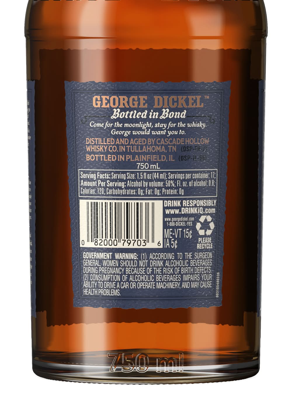 Experience a one-of-a-kind release with George Dickel Bottled in Bond Tennessee Whisky, Distilling Season Spring 2007, Aged 13 Years. Sourced from barrels laid down during a single distilling season, the whisky is selected at peak maturity for a taste that's unique, complex, and bold. Aged and bottled according to The Bottled in Bond Act of 1897, Bottled in Bond whisky is unaltered from its original condition or character. Made with 84% corn, 8% rye, and 8% malted barley, these bold tasting notes consist of pecan, maple syrup, and dried apple. Best enjoyed neat or on the rocks. Includes one 100 proof 750 mL bottle of George Dickel Bottled in Bond Tennessee Whisky, Distilling Season Spring 2007, Aged 13 Years. Please drink responsibly. Alcohol by volume: 50%