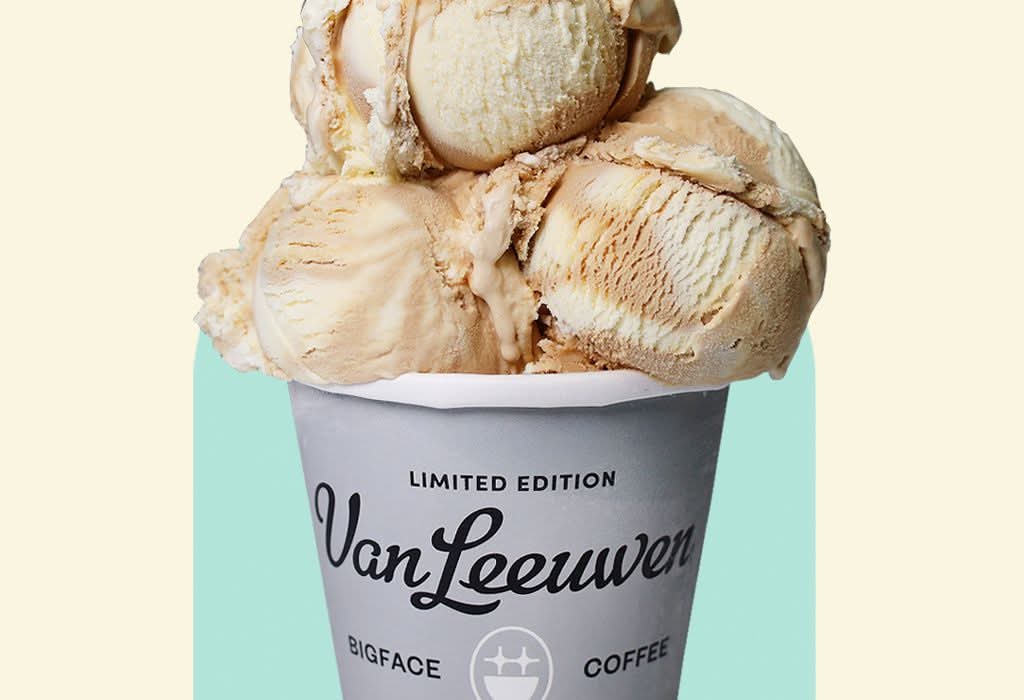Coffee ice cream swirled with sweet cream ice cream. Contains milk and eggs.