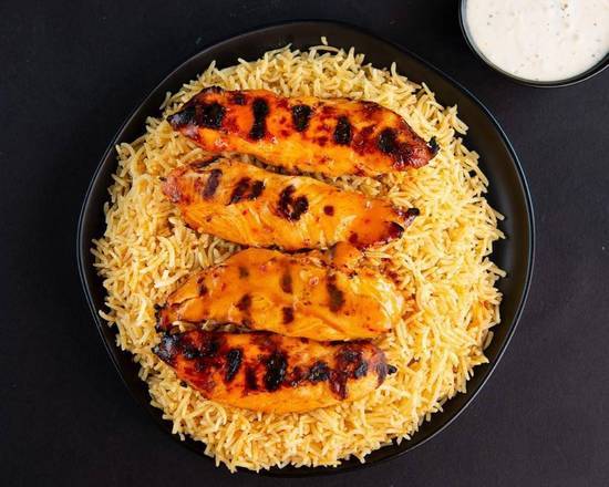 Peri peri chicken and Vasco's rice. Accompanied with one dip of 2 oz.