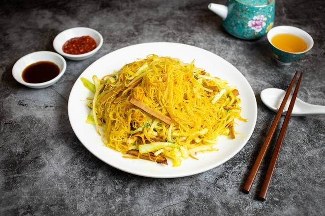 Fresh seasonal vegetables cooked in Singaporean style rice vermicelli. Gluten-free.