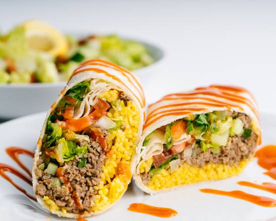 Basmati Rice, Romaine Lettuce, Red Onions, Tomatoes and Vegan Chipotle Mayo