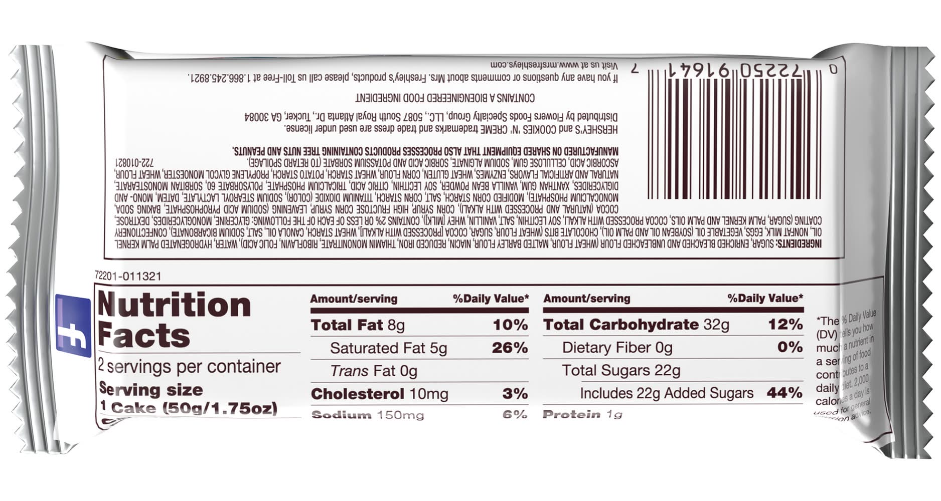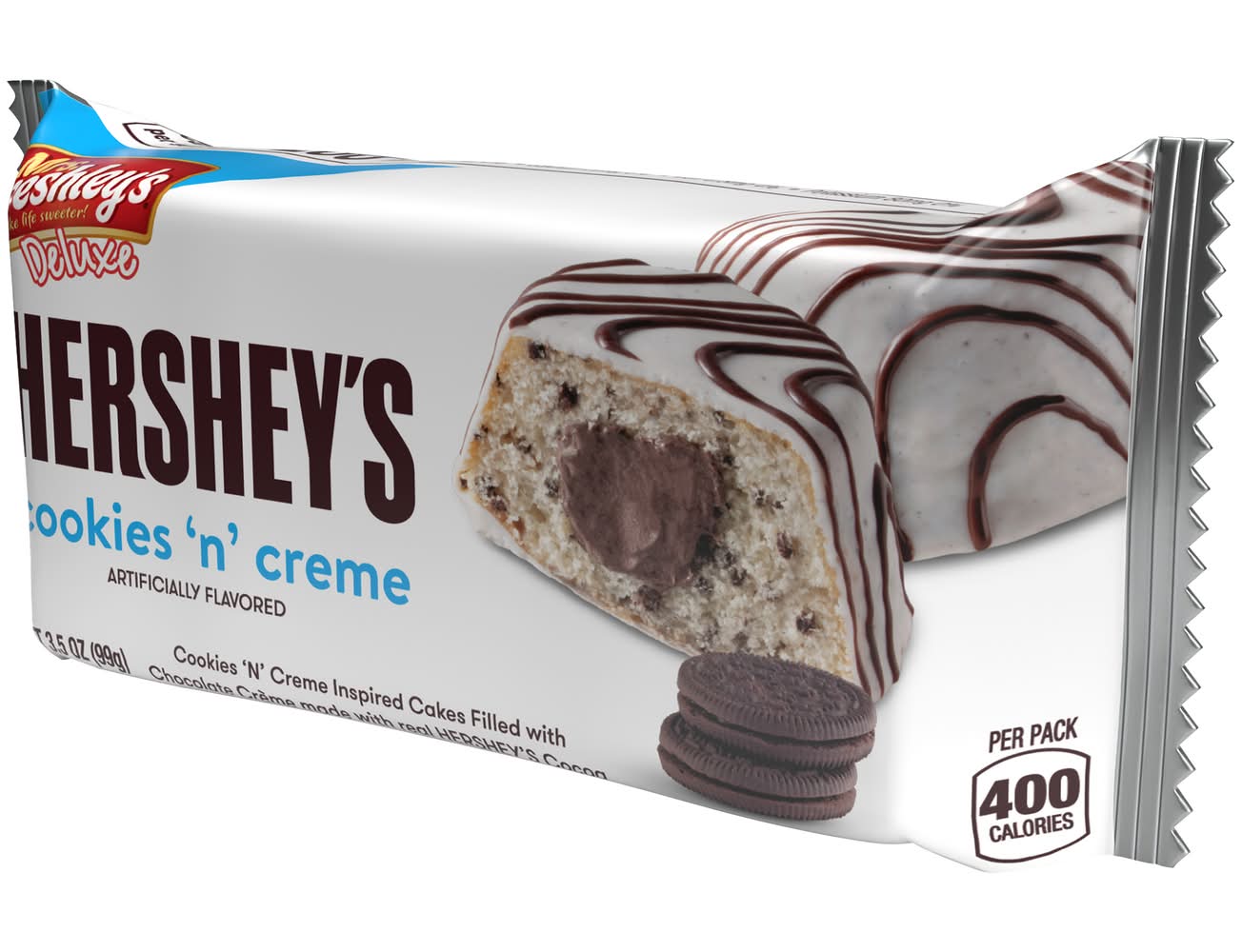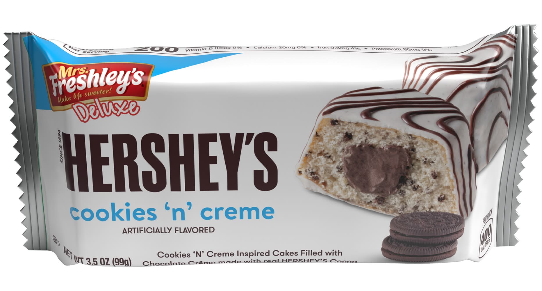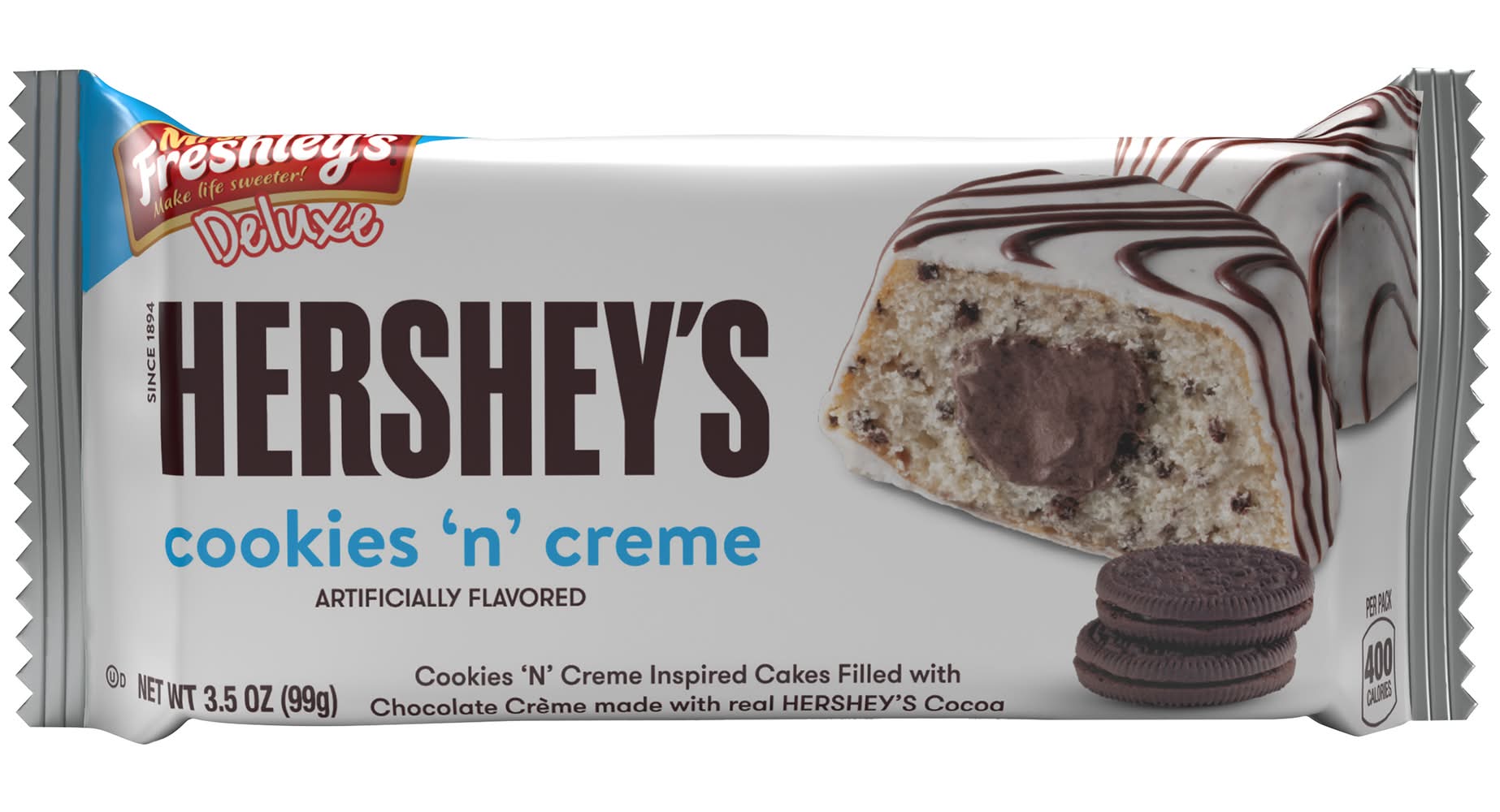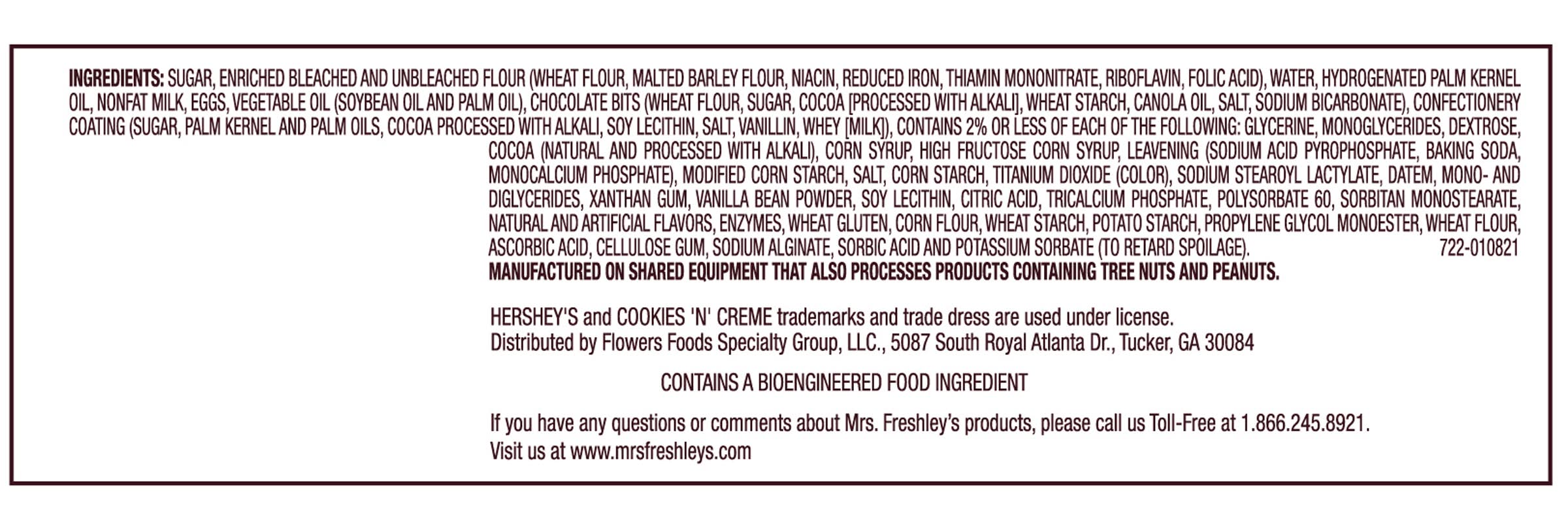 Deluxe Hershey's Cookies 'N' Creme Cakes • Brand: Mrs. freshley's • kosher • Number of servings: 2 • Flowers Foods Specialty Group, LLC, Tucker, GA, 30084, Ph: 866-245-8921