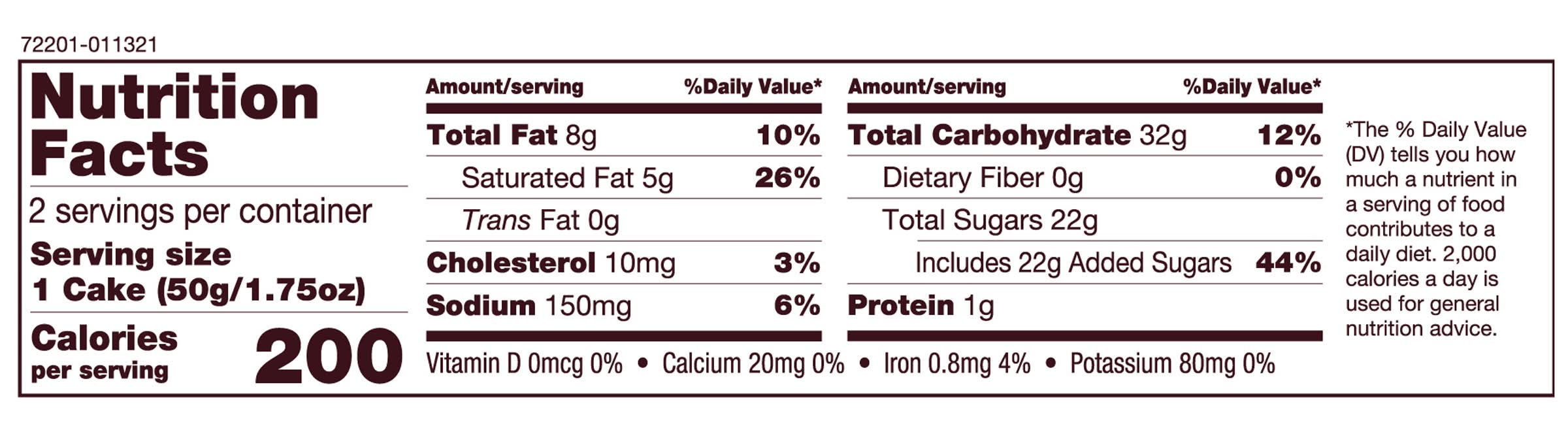 Ingredients: Sugar, Enriched Bleached and Unbleached Flour (Wheat Flour, Malted Barley Flour, Niacin, Reduced Iron, Thiamin Mononitrate, Riboflavin, Folic Acid), Water, Hydrogenated Palm Kernel Oil, Nonfat Milk, Eggs, Vegetable Oil (Soybean Oil and Palm Oil), Chocolate Bits (Wheat Flour, Sugar, Cocoa [Processed with Alkali), Wheat Starch, Canola Oil, Salt, Sodium Bicarbonate), Confectionery Coating (Sugar, Palm Kernel and Palm Oils, Cocoa Processed with Alkali, Soy Lecithin, Salt, Vanillin, Whey [Milk), Contains 2% or Less of Each of the Following: Glycerine, Monoglycerides, Dextrose, Cocoa (Natural and Processed with Alkali), Corn Syrup, High Fructose Corn Syrup, Leavening (Sodium Acid Pyrophosphate, Baking Soda, Monocalcium Phosphate), Modified Corn Starch, Salt, Corn Starch, Titanium Dioxide (Color), Sodium Stearoyl Lactylate, DATEM, Mono- and Diglycerides, Xanthan Gum, Vanilla Bean Powder, Soy Lecithin, Citric Acid, Tricalcium Phosphate, Polysorbate 60, Sorbitan Monostearate, Natural and Artificial Flavors, Enzymes, Wheat Gluten, Corn Flour, Wheat Starch, Potato Starch, Propylene Glycol Monoester, Wheat Flour, Ascorbic Acid, Cellulose Gum, Sodium Alginate, Sorbic Acid and Potassium Sorbate (to Retard Spoilage) Contains: Wheat, Milk, Eggs, Soybeans, Gluten, Tree Nuts, Peanuts