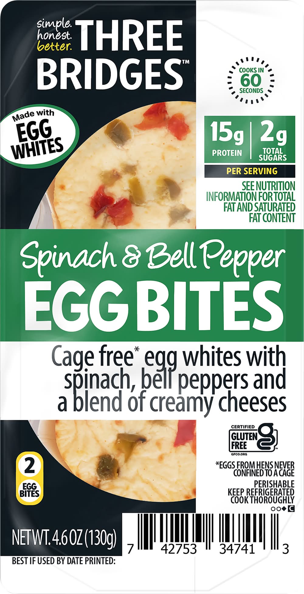 Three Bridges Spinach & Bell Pepper Egg Bites (4.6 oz, 2 ct)
