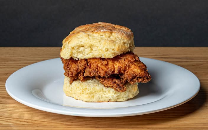 Buttermilk biscuit and crispy fried chicken