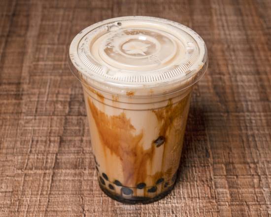 Earl gray, brown sugar syrup, non-dairy creamer, and brown sugar tapioca pearls.