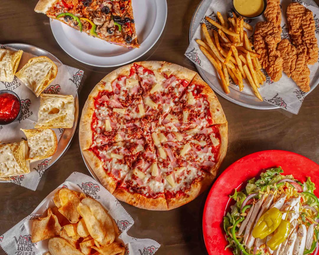 The most ordered items from Village Idiot (612 Whaley St Ste A) are: 16” Octopus’ Garden, Pound of Wings, 16” Freshman Fifteen.