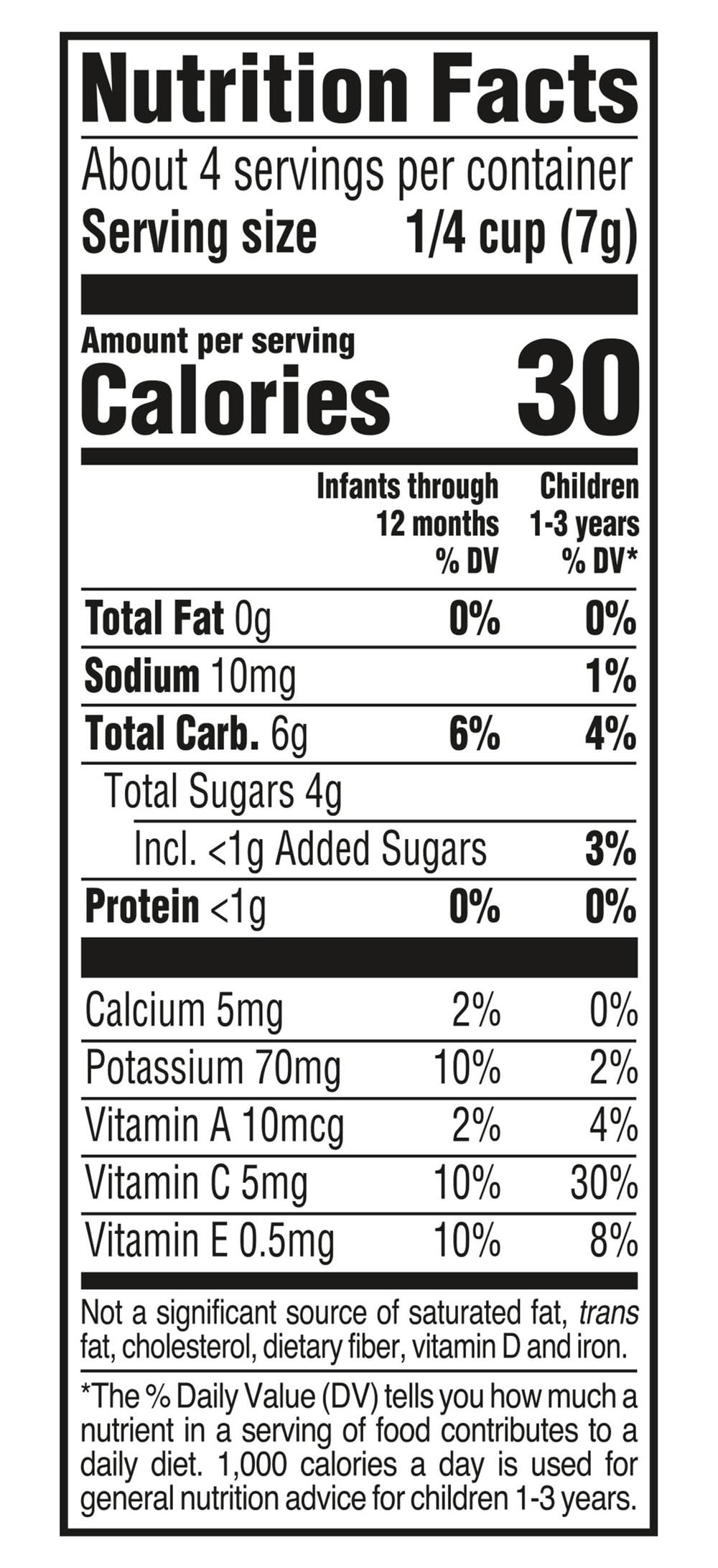 Ingredients: Butternut Squash Puree, Apple Puree, Banana Puree, White Grape Juice (Water, White Grape Juice Concentrate), Mango Puree, Pineapple Puree, Tapioca Starch, Yellow Carrot Juice Concentrate (Color), Carrot Juice Concentrate, Less than 1.5% of: Gelatin, Lactic Acid Esters of Mono and Diglycerides, Citric Acid, Natural Flavor, Pineapple Juice Concentrate, Strawberry Juice Concentrate, Vitamins and Minerals: Vitamin C (Ascorbic Acid), Vitamin E (Alpha Tocopheryl Acetate)