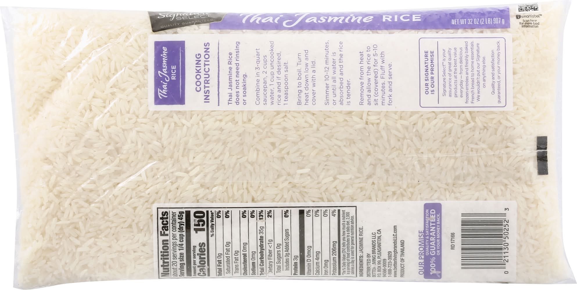 Cooking instructions: thai jasmine rice does not need rinsing or soaking. combine in 3-quart saucepan, 2 cups water, 1 cup uncooked rice and if desired, 1 teaspoon salt. bring to boil. turn heat down low and cover with a lid. simmer 10-12 minutes, or until all water is absorbed and the rice is tender. remove from heat and allow the rice to sit (covered) for 5-10 minutes. fluff with fork and serve.