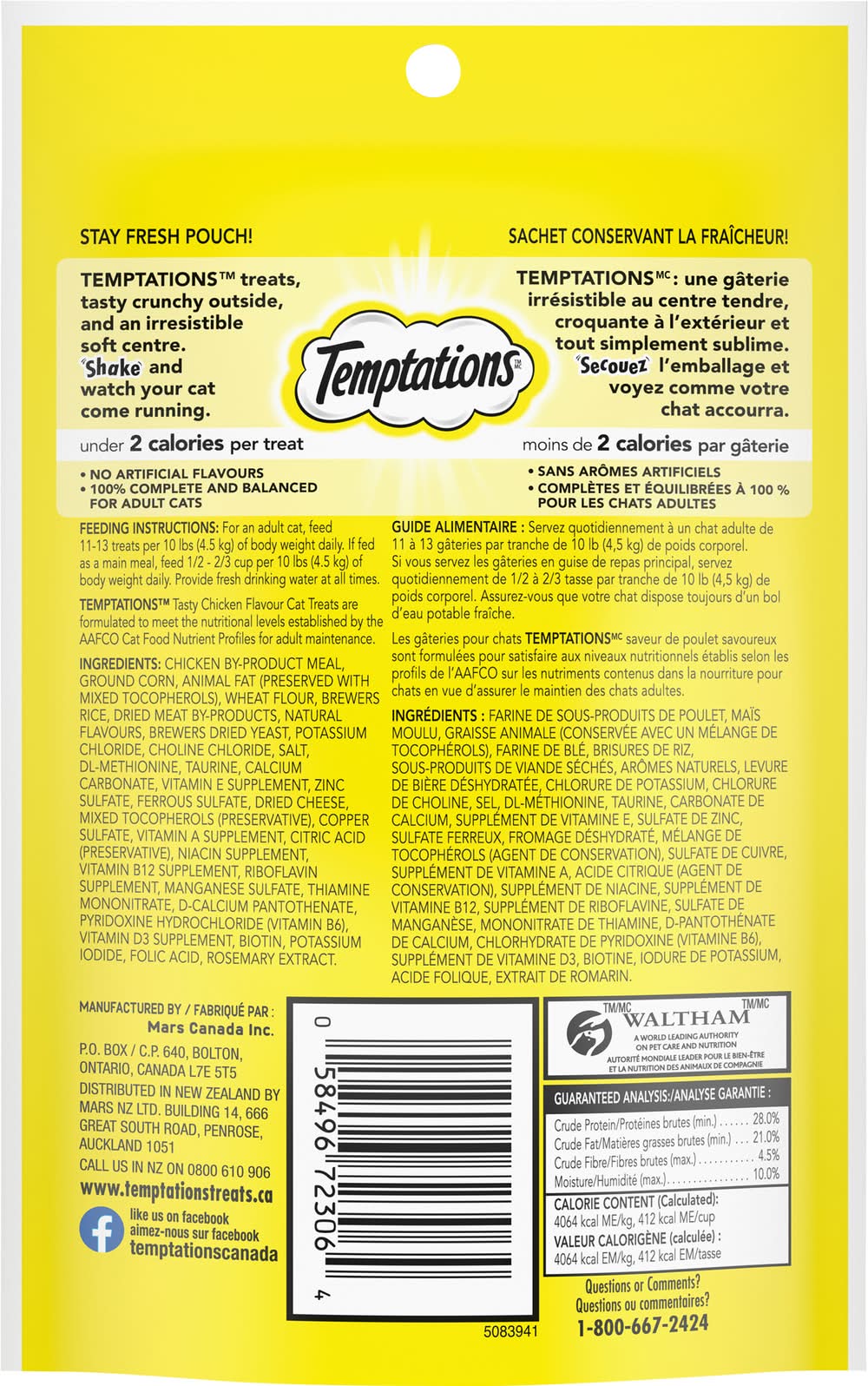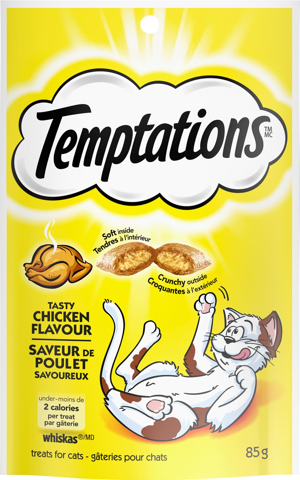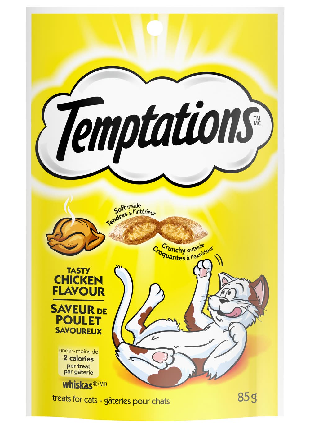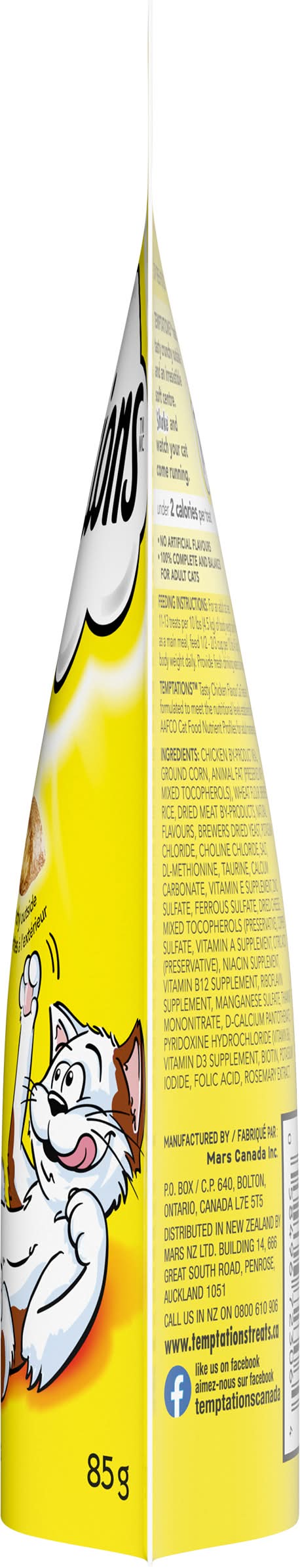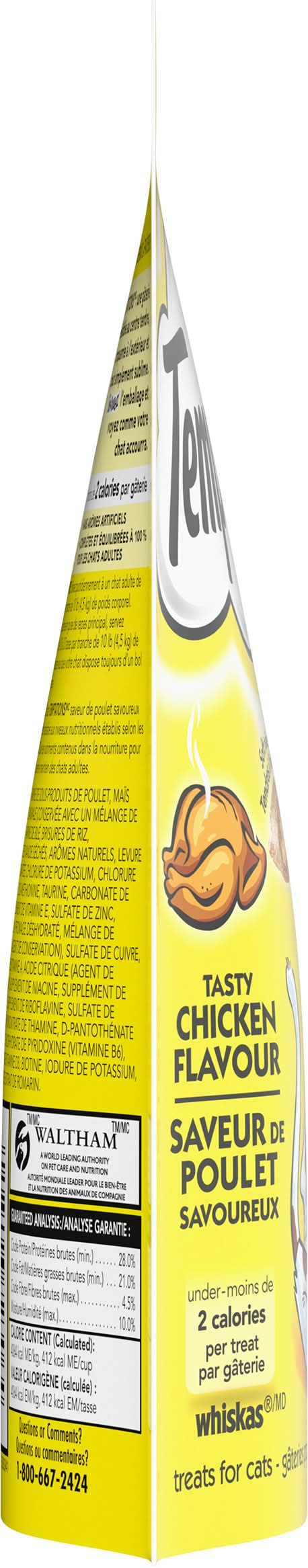Temptations Tasty Chicken Flavor Cat Treats are formulated to meet the nutritional levels established by the AAFCO Cat Food Nutrient Profiles for adult maintenance. Under 2 calories per treat. Crunchy outside. Soft inside.To cross or not to cross the road, that is the question. And a very simple one it is, for one of the feline persuasion, when a delicious, bird-brained hen is the prey on the other side. Oh, chicken, I will taste victory! You can count on it. Soon as you gimme some Temptations Cat Treats! Waltham: A world leading authority on pet care and nutrition. 100% nutritionally complete & balanced for adult maintenance.