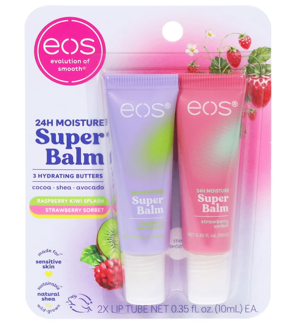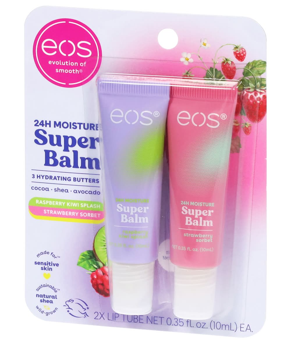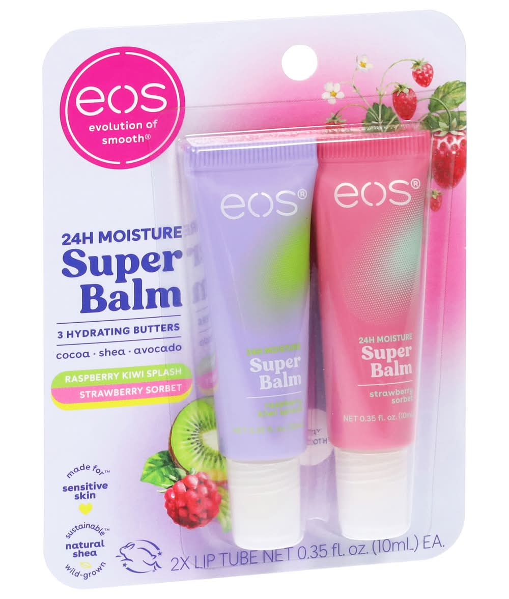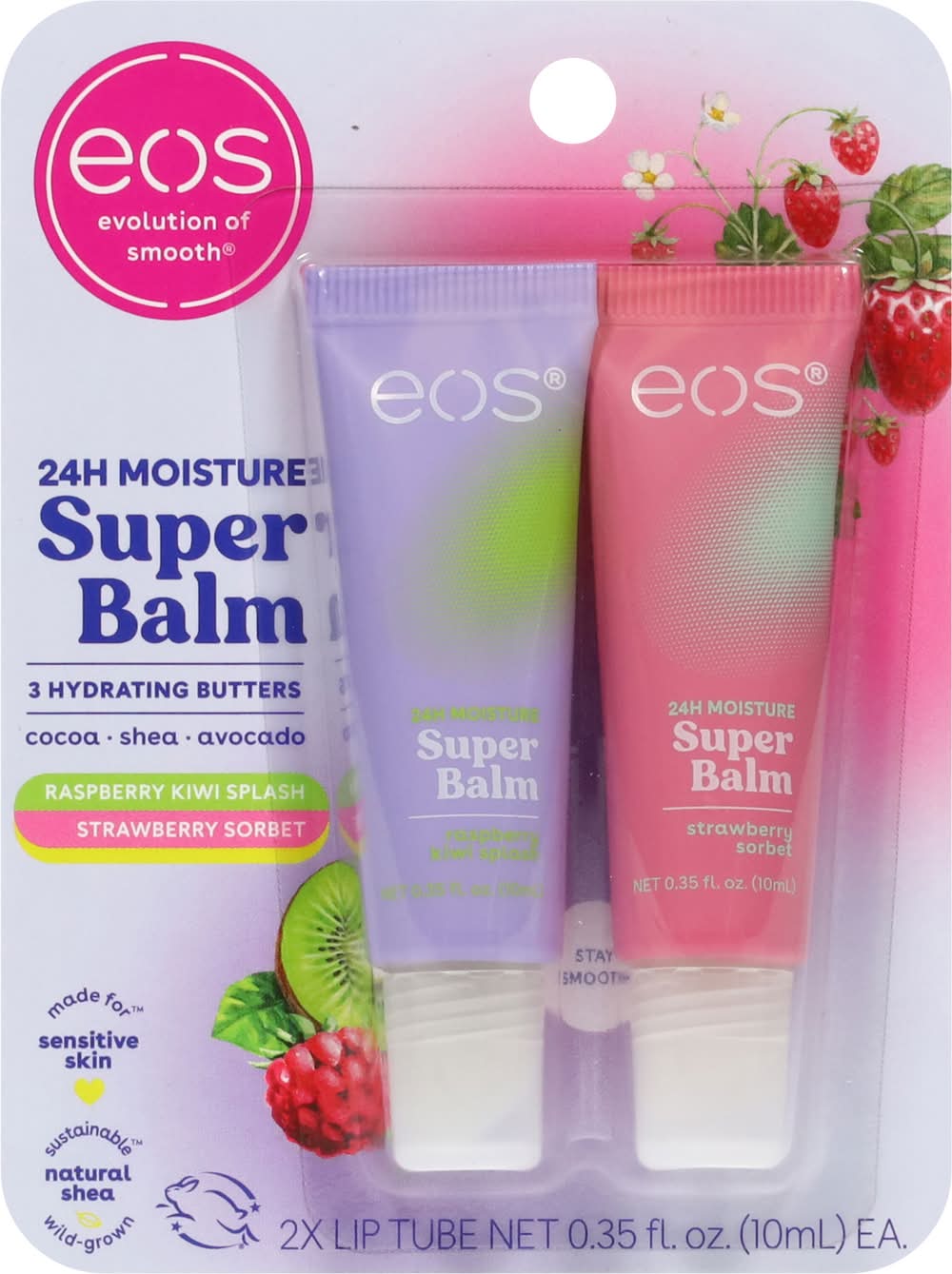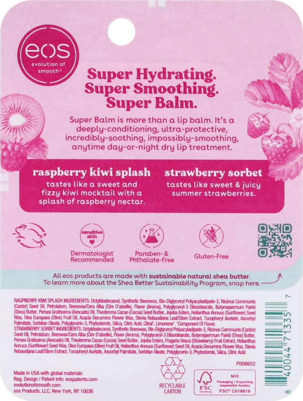 eos 24Hrs Moisture Super Lip Balms, Raspberry Kiwi Splash-Strawberry Sorbet (0.35 fl oz, 2 ct)