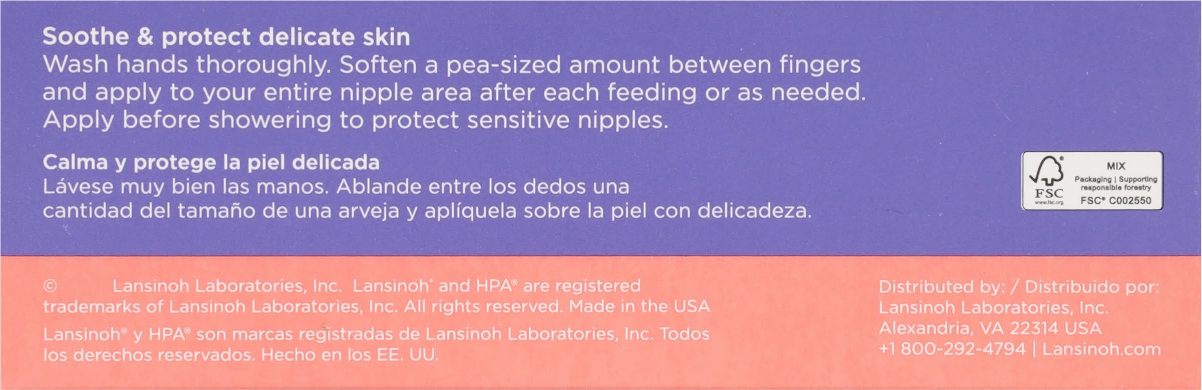 Ingredients: Lanolin (Lanolin 100% HPA Modified Lanolin, USP)