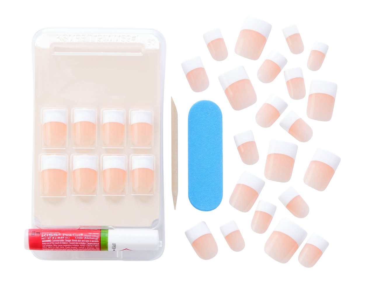 KISS Salon Acrylic French Square Nails, M, Sugar Rush (1.6 oz, 28 ct)