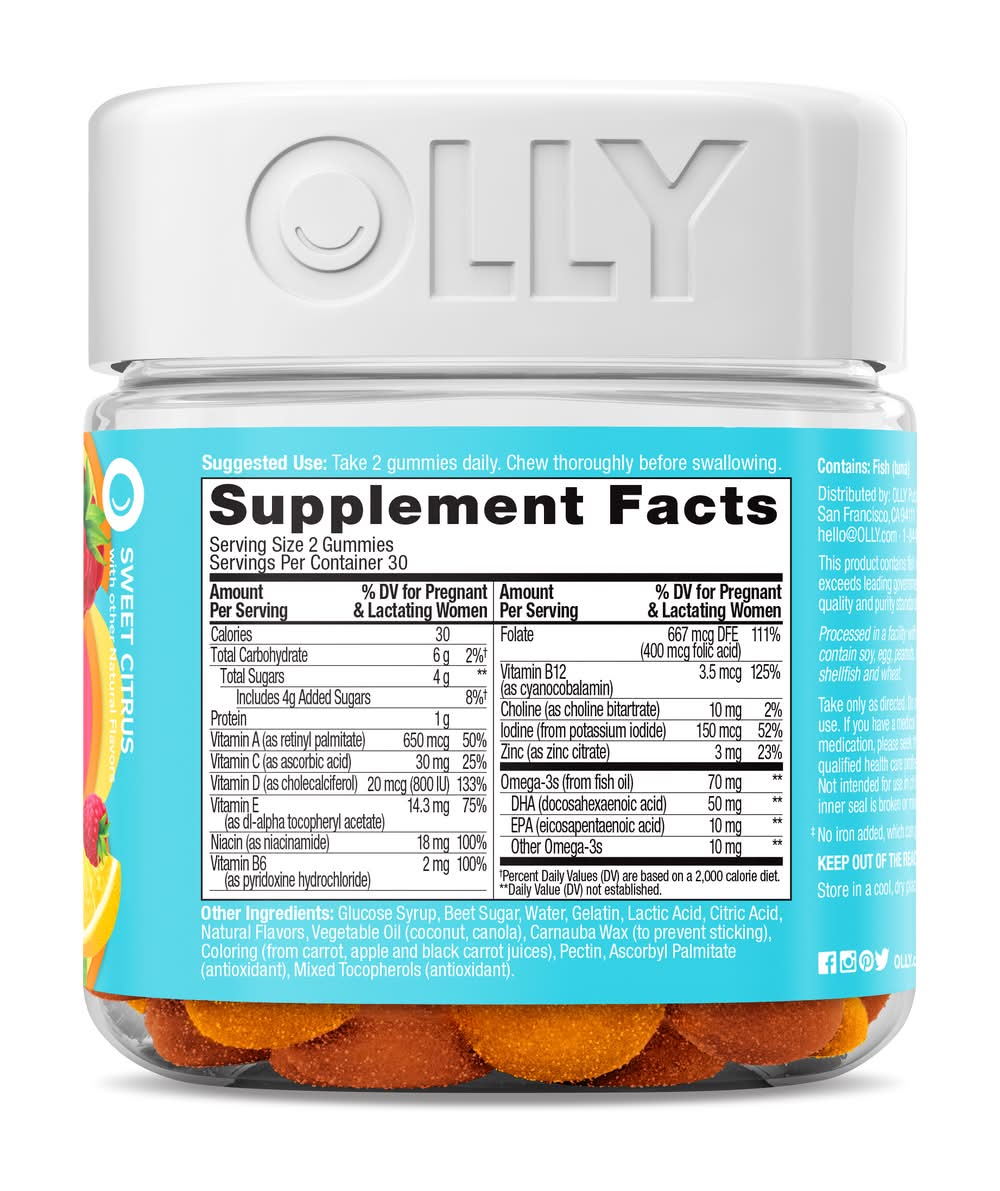 Olly The Essential Prenatal Folic Acid+Dha Gummies, Sweet Citrus (60 ct)