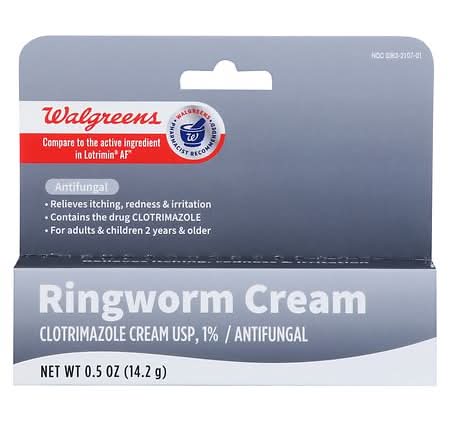 Walgreens Antifungal Ringworm Cream contains clotrimazole, an active ingredient known for its efficacy in treating ringworm. It provides relief from itching, redness, and irritation associated with ringworm infections. The cream is suitable for use by both adults and children aged 2 years and older.