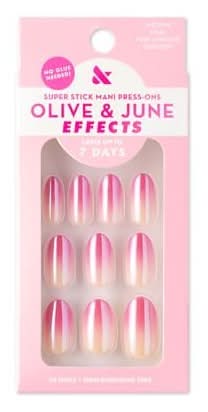 Get an easy on, easy off mani whenever you want. Introducing The Super Stick Mani by Olive & June are press-on nails with adhesive tabs that last up to 7 days. Available in 16 sizes (the most ever!) with the realest-looking fit. • Color: Pink chrome gradient • Size: Medium