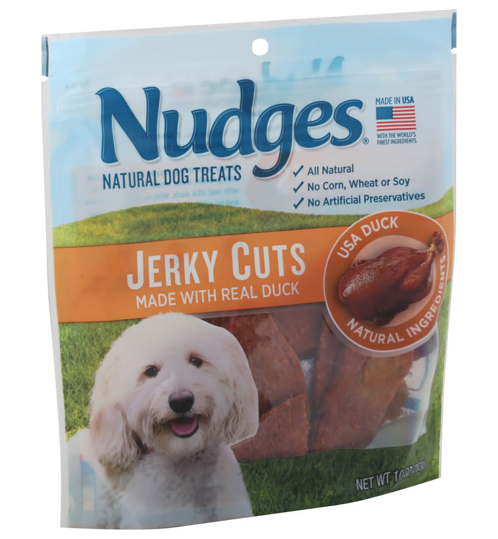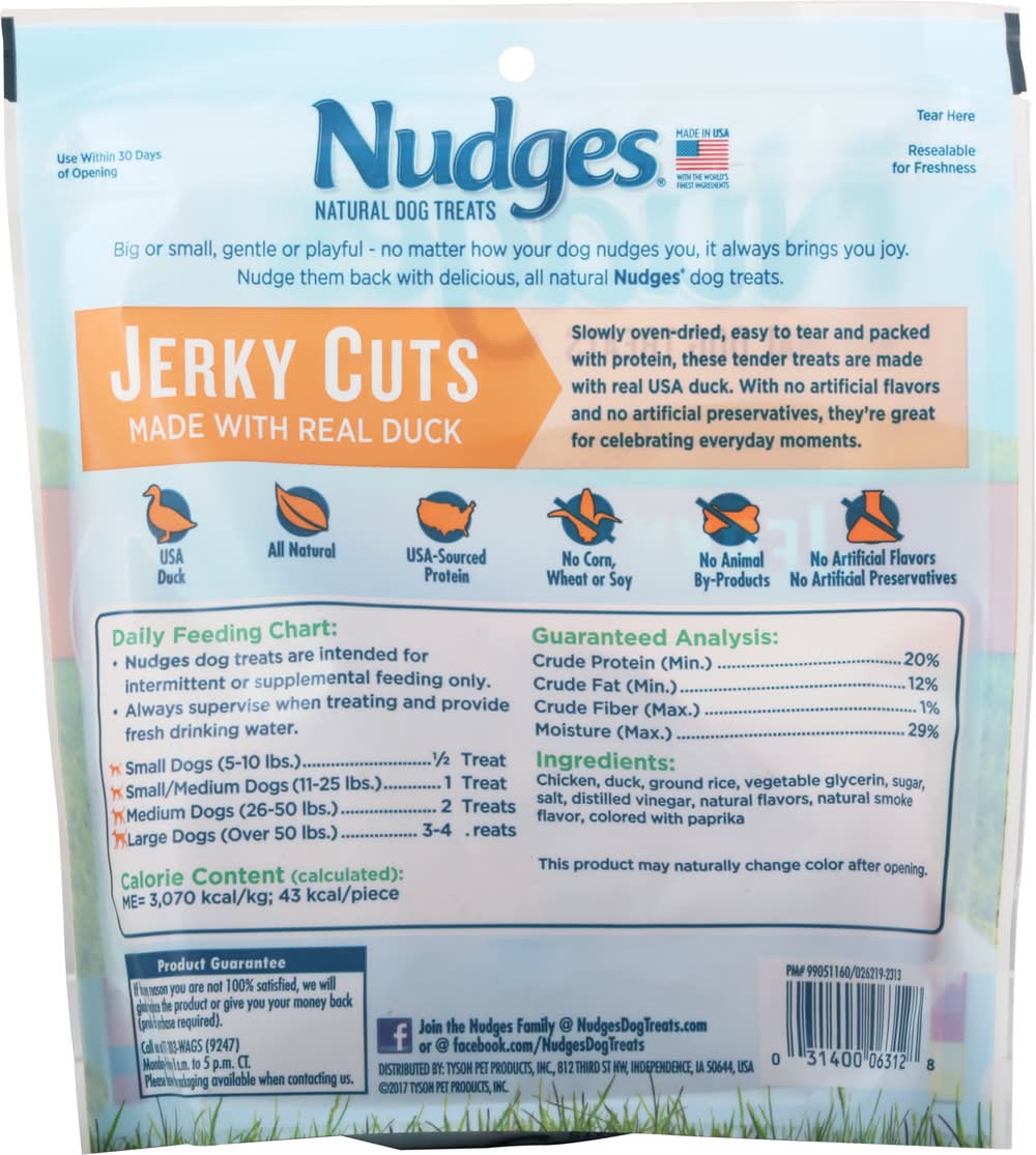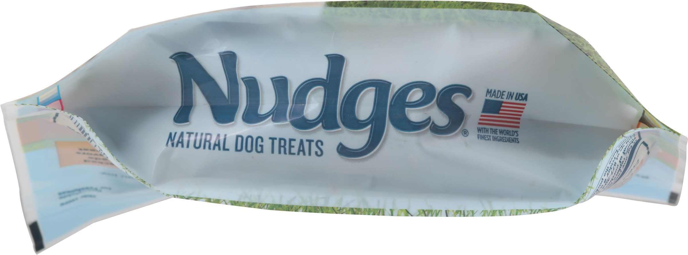 Daily feeding chart: nudges dog treats are intended for intermittent or supplemental feeding only. always supervise when treating and provide fresh drinking water. small dogs (5-10 lbs.): 1/2 treat. small/medium dogs (11-25 lbs.): 1 treat. medium dogs (26-50 lbs.): 2 treats. large dogs (over 50 lbs.): 3-4 treats. tear here. use within 30 days of opening.