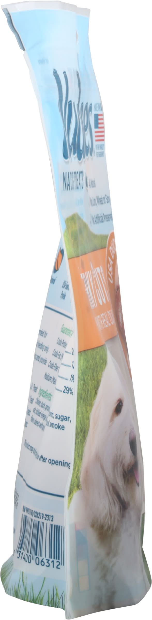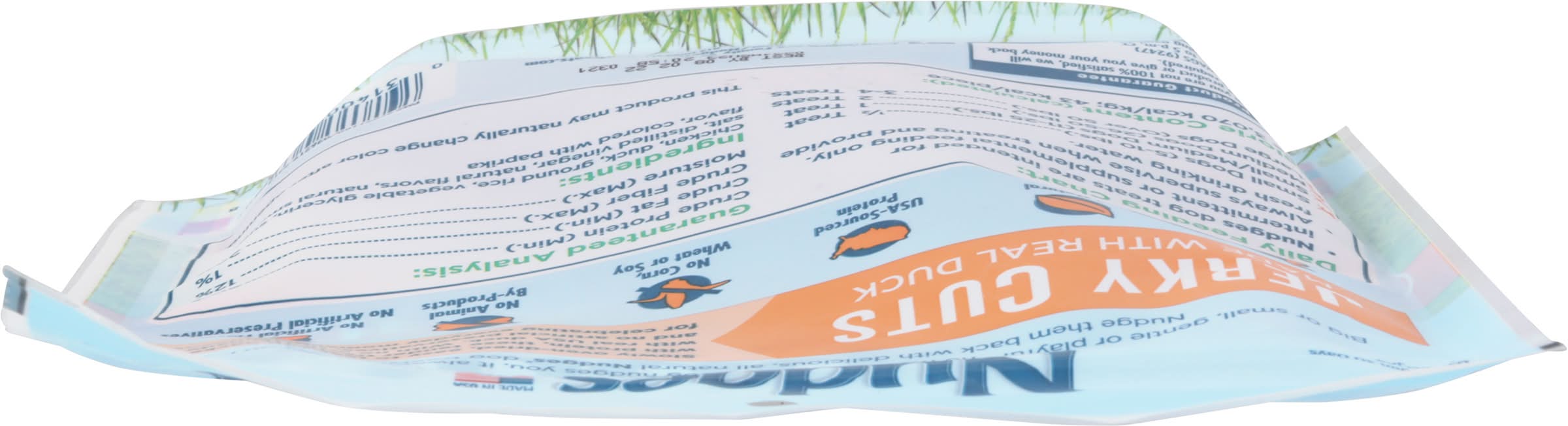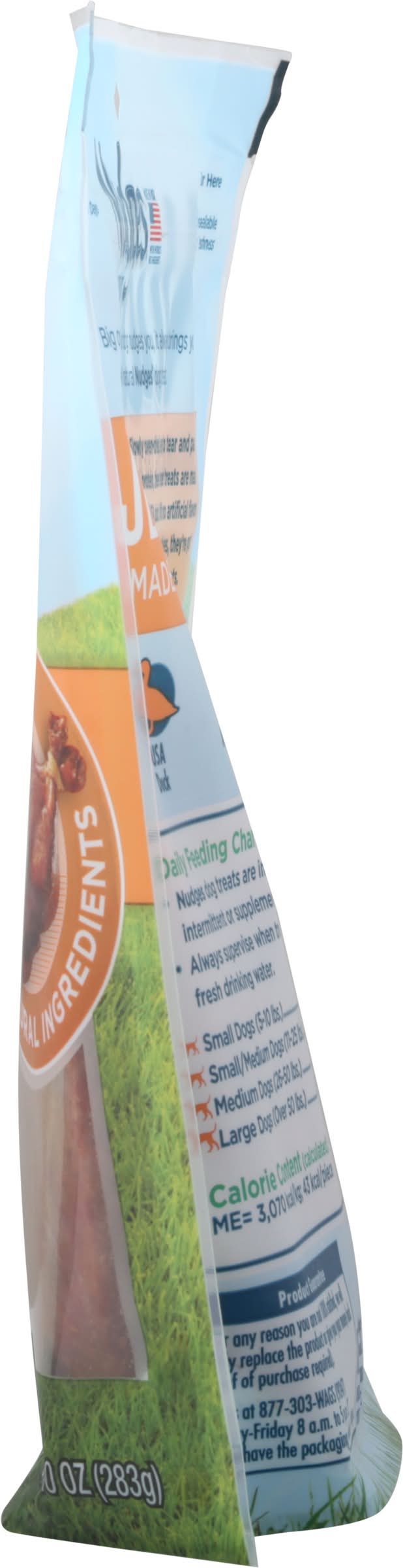 Daily feeding chart: nudges dog treats are intended for intermittent or supplemental feeding only. always supervise when treating and provide fresh drinking water. small dogs (5-10 lbs.): 1/2 treat. small/medium dogs (11-25 lbs.): 1 treat. medium dogs (26-50 lbs.): 2 treats. large dogs (over 50 lbs.): 3-4 treats. tear here. use within 30 days of opening.