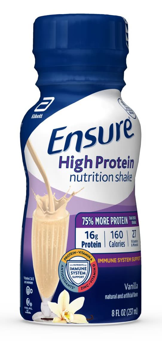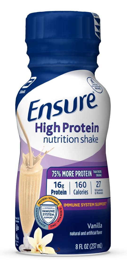 Ensure High Protein Vanilla Nutrition Shake is a source of balanced nutrition designed to support strength and energy. These shakes are formulated to contribute to immune system health with increased levels of vitamin C and vitamin D. Suitable for individuals with lactose intolerance, the shakes are also certified as gluten-free. Available in a convenient 6-pack, the vanilla flavor provides a delicious option for those who seek a nutritious beverage. • Flavor: Vanilla • Pack size: 6 • Abbott Nutrition, Abbott Laboratories, Columbus, OH, 43219-3034, USA