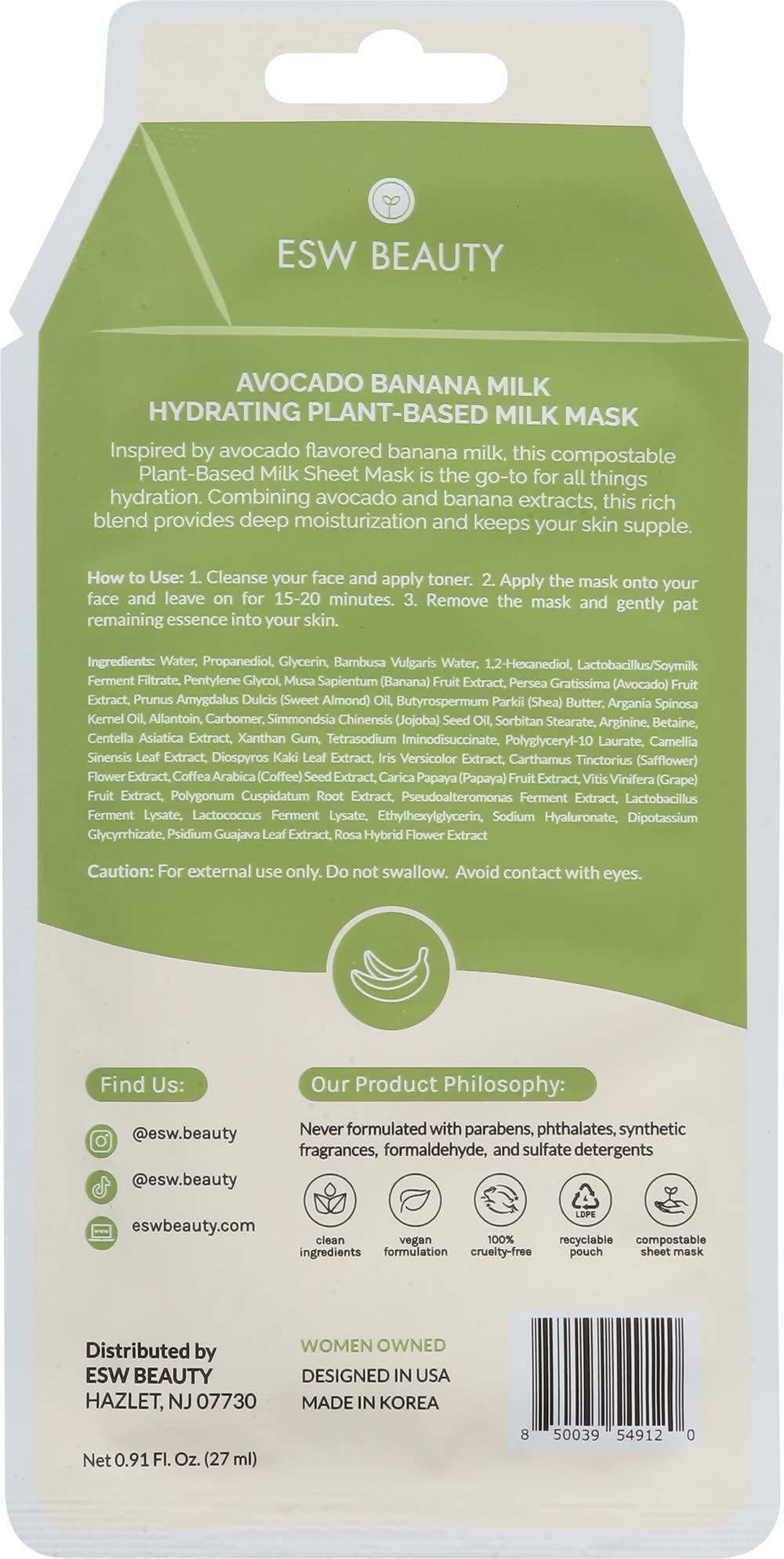 ESW Beauty Plant-Based Avocado Banana Milk Mask (0.91 fl oz)