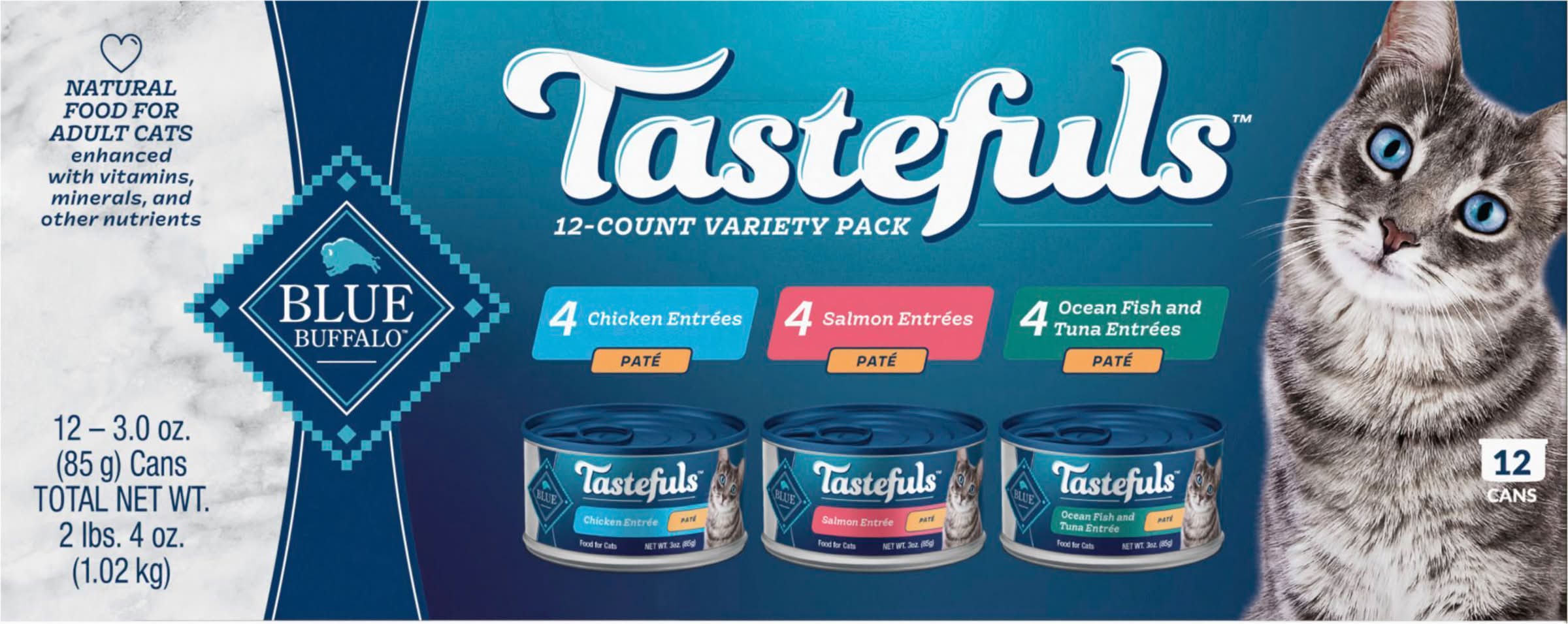 Blue Buffalo Tastefuls Wet Cat Food Variety pack, Adult (12 x 3 oz)