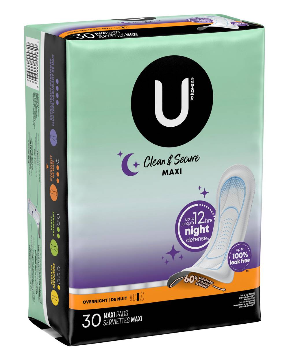 U by Kotex Clean and Secure Overnight Maxi Pads (30 ct)