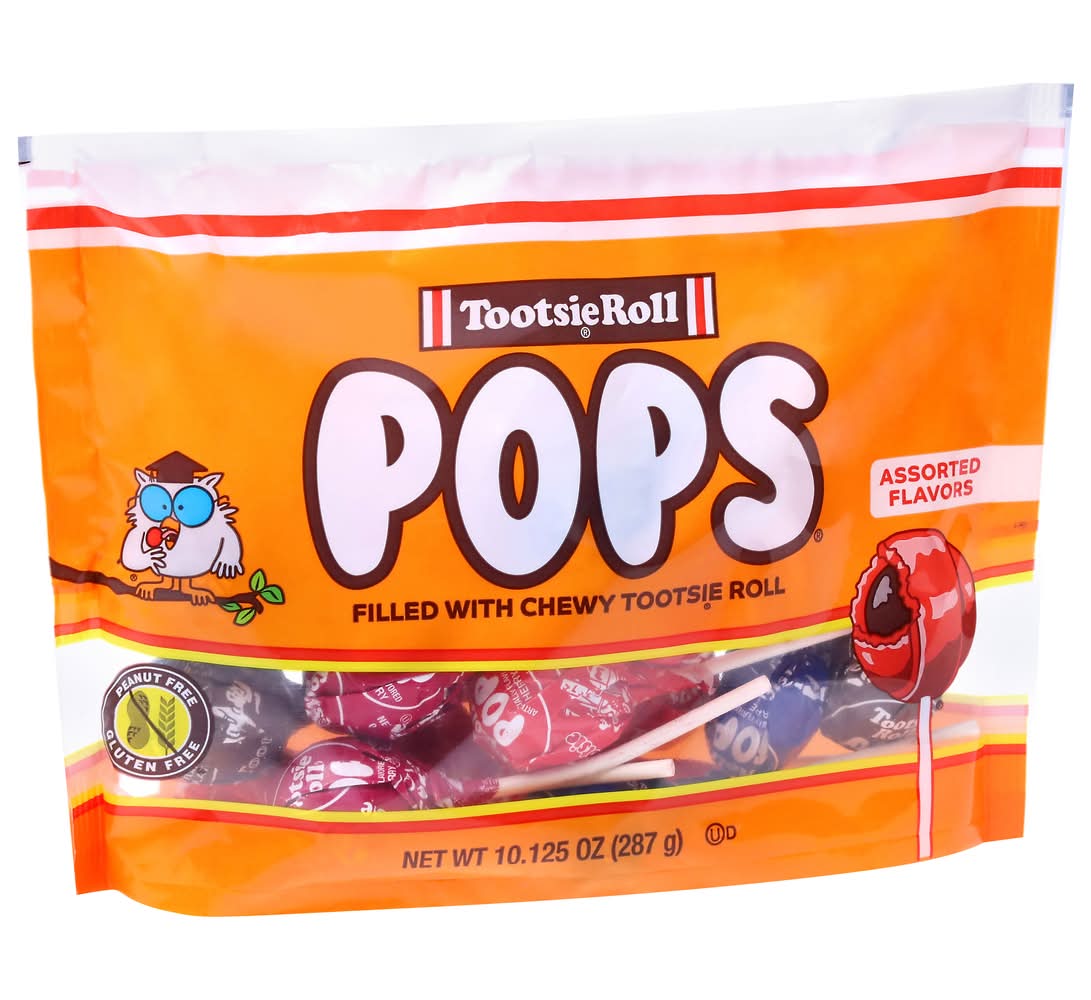 What goes into the world's number #1-selling candy-filled lollipop? Start with a chewy, Tootsie Roll center, cover it with a great tasting hard candy coating, and you've got a simple, delicious treat, a Tootsie original that was the first lollipop providing an embedded candy "prize." And at only 60 calories per fat-free pop, it's the perfect guilt-free, sweet tooth-pleasing treat that everyone can enjoy. Made in US • Flavor: Assorted • Number of servings: 17 • Tootsie Roll Industries, LLC, Chicago, IL, 60629, Ph: 800-877-7655