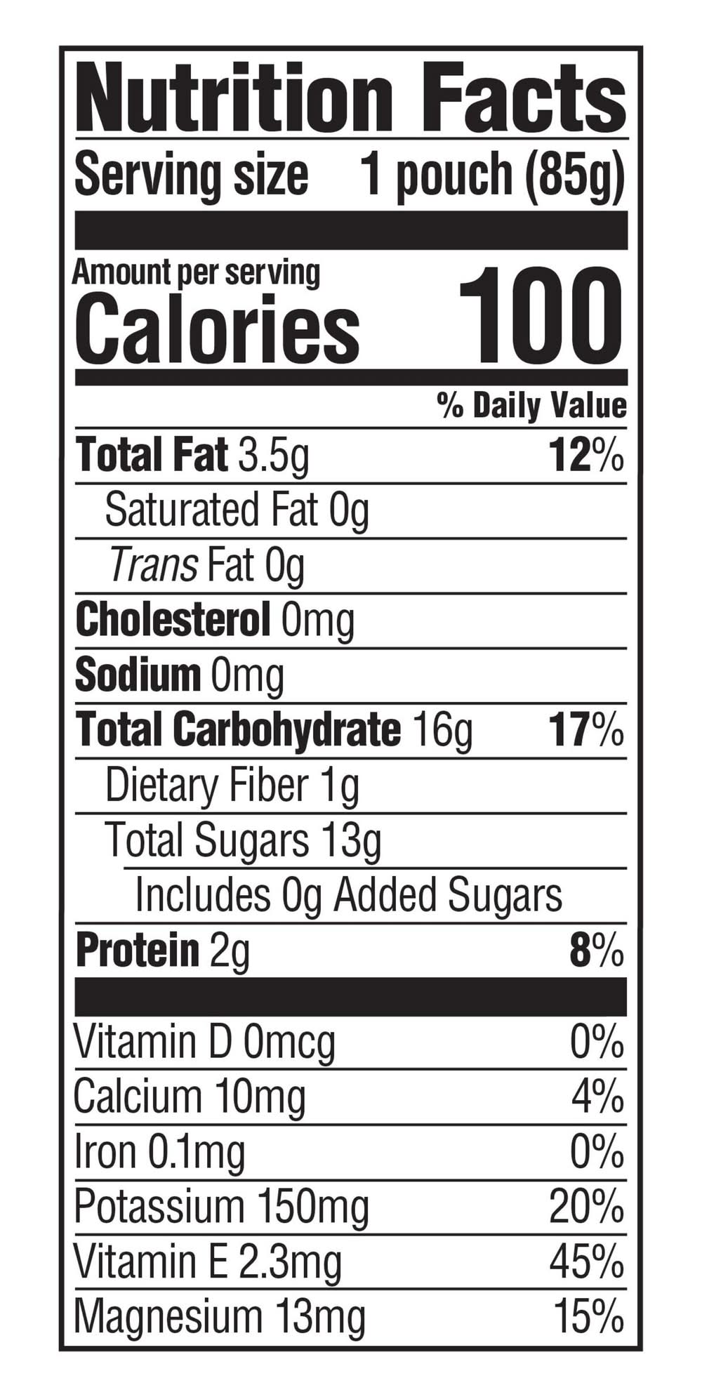 Ingredients: ORGANIC BANANA PUREE, ORGANIC ALMONDS, WATER, ORGANIC LEMON JUICE CONCENTRATE, ASCORBIC ACID (VITAMIN C), TO PRESERVE FRESHNESS, MIXED TOCOPHEROLS (VITAMIN E), . Contains: CONTAINS: ALMONDS.