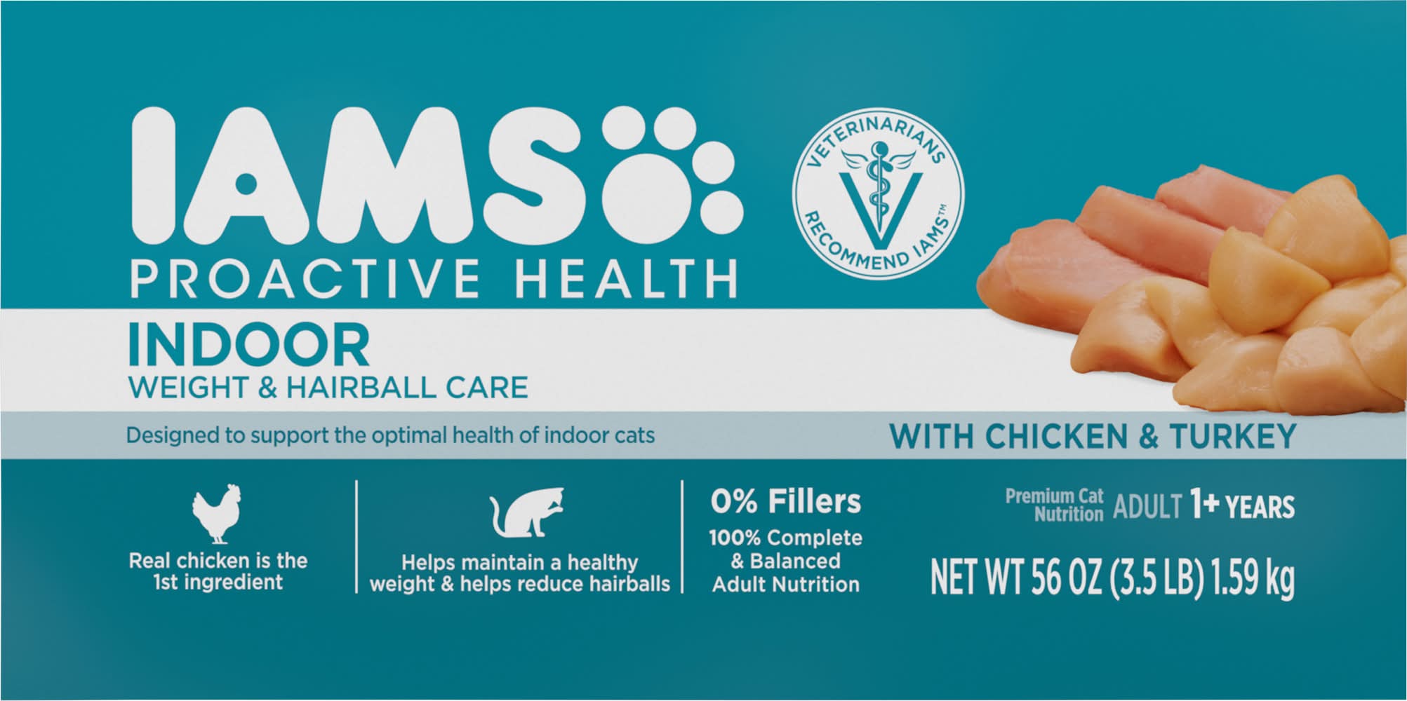 Iams Proactive Health Indoor Weight & Hairball Care Dry Cat Food, Chicken-Turkey (56 oz)