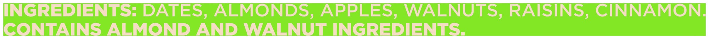 Ingredients: Dates, Almonds, Apples, Walnuts, Raisins, Cinnamon Contains: Tree Nuts, Almonds, Tree Nuts, Walnuts/Butternuts