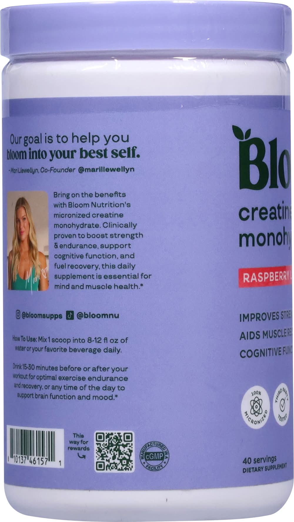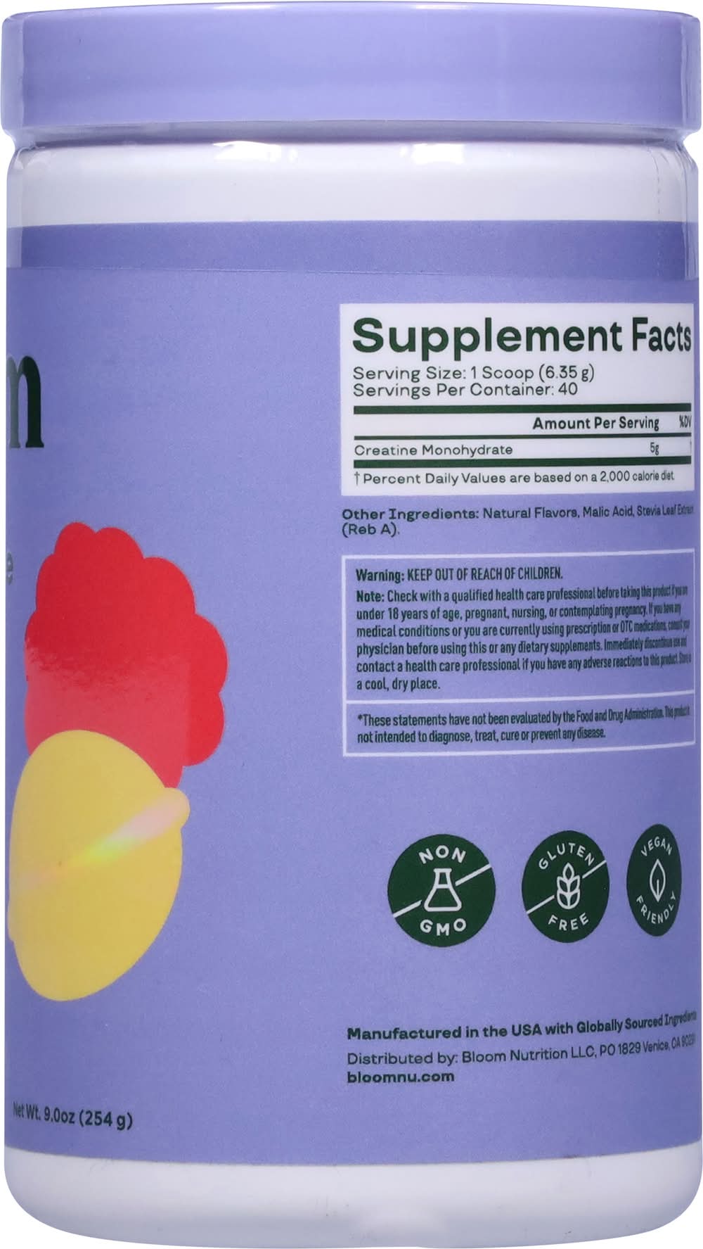Bloom Creatine Monohydrate Dietary Supplements, Raspberry-Lemon (9 oz)
