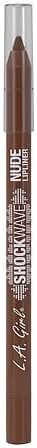 L.A. Girl Shockwave Nude Lip Liner offers a creamy pigment that glides on smoothly for a full coverage finish. It is designed for creating vivid, statement lips with shockingly bold colors. This lip liner is part of the Neon collection and is housed in a soft plastic pencil compatible with regular sharpeners, allowing for precise application. Color: Chai latte