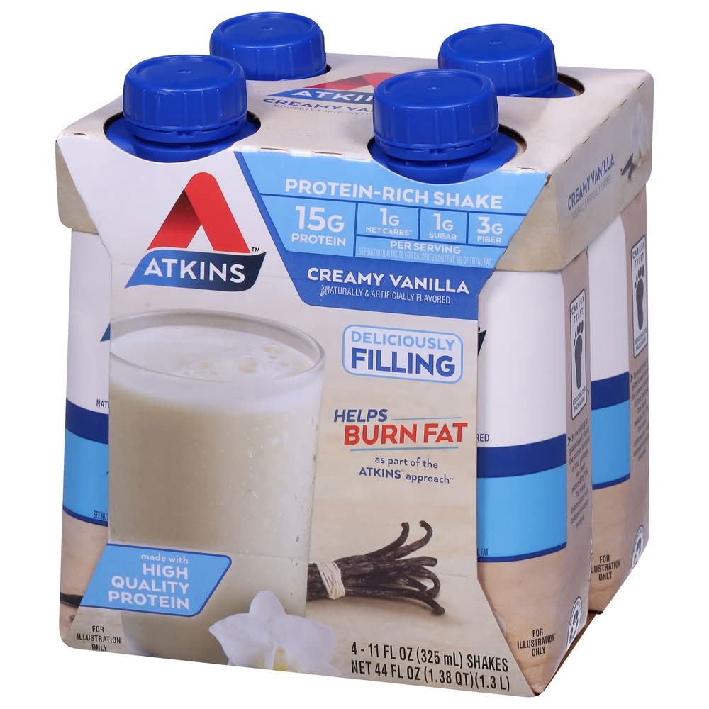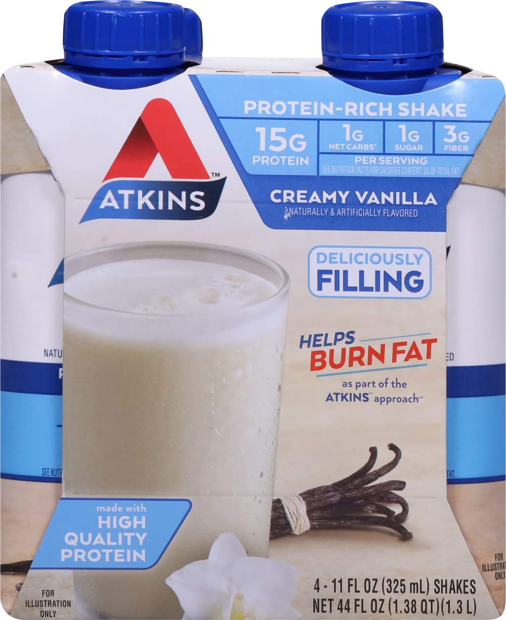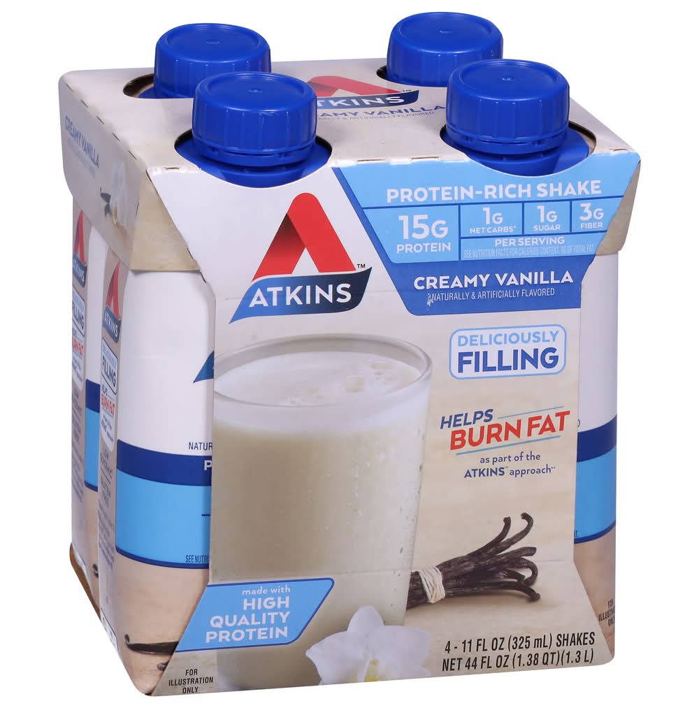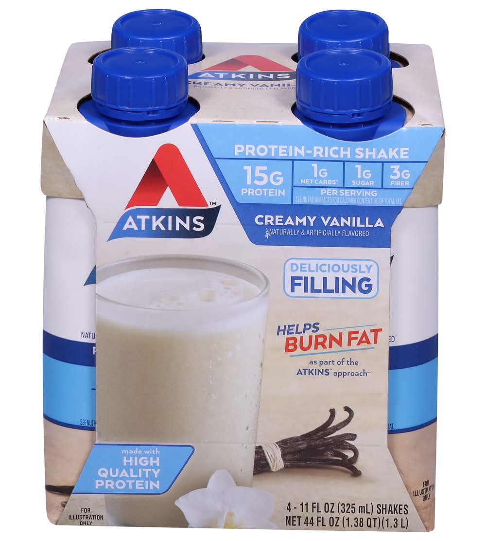 Atkins Creamy Protein-Rich Shake, Vanilla (4 x 11 fl oz)