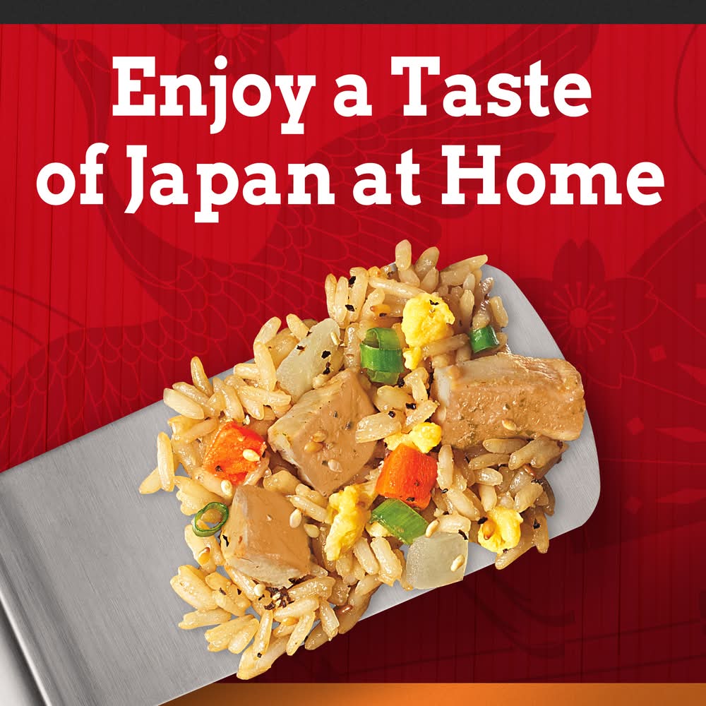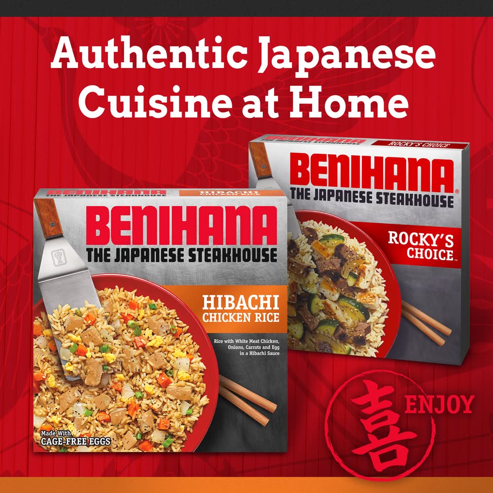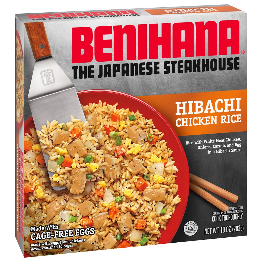 Benihana Hibachi Chicken Rice is not just a meal, it's an experience. Inspired by Benihana's classic menu, this meal delivers the restaurant experience you crave, at home. Hearty, sizzling white meat chicken and a savory combination of onions, carrots and egg are mixed with fried jasmine rice for an enticing, grilled flavor. Benihana frozen entrees give you Japanese steakhouse taste from the convenience of your home. Enjoy this classic teppanyaki take on chicken and rice for your next Japanese-inspired meal, or serve it as a savory side dish on busy weeknights. Ready to eat in under 4 minutes, this 10-ounce frozen meal includes a microwaveable tray to streamline cooking. Benihana hibachi frozen food makes it easy to enjoy a hot meal at home or in the break room, so be sure to keep your freezer stocked.