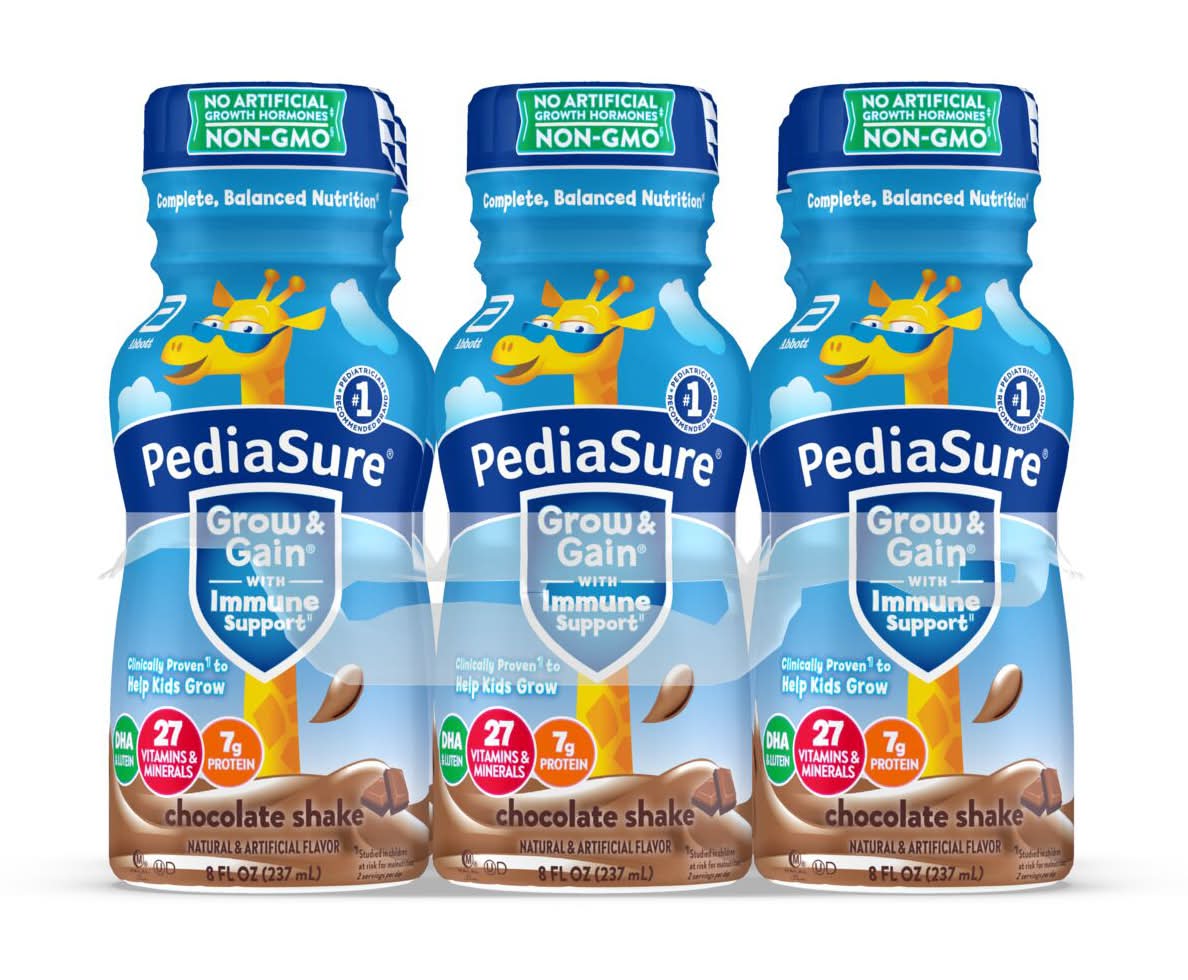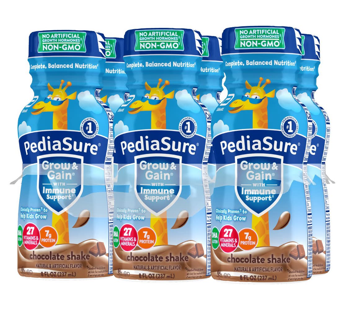 Natural and artificial flavor. Complete, balanced nutrition. No. 1 pediatrician recommended brand. Immune support. Clinically proven Studied in children at risk for malnutrition to help kids grow. No artificial growth hormones. No significant difference has been shown between milk derived from from rbST-treated and non-rbST treated cows. Suitable for lactose intolerance. Same proven growth, now with 27 vitamins & minerals. Clinically proven to help kids grow. • Flavor: Chocolate • Pack size: 6 • Abbott Nutrition, Columbus,OH,43219-3034
