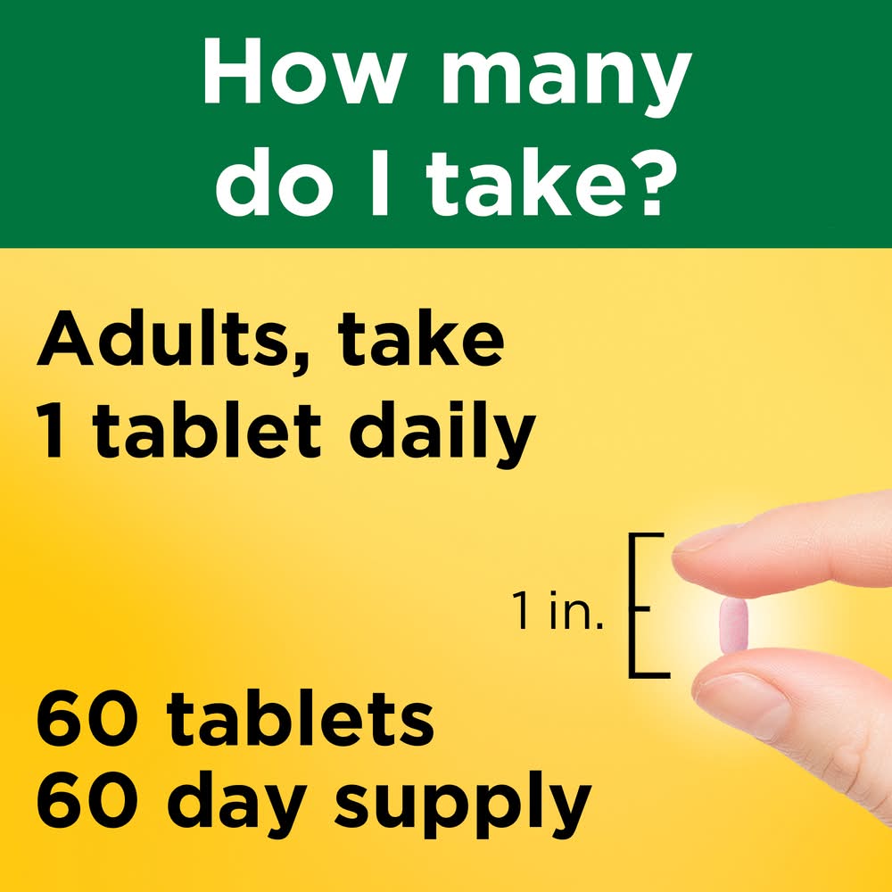 Directions for use: Suggested Use: Adults, take 1 tablet daily with water and a meal. Store tightly closed, in a cool, dry place, out of reach of children. Storage recommendation: Store tightly closed, in a cool, dry place, out of reach of children.