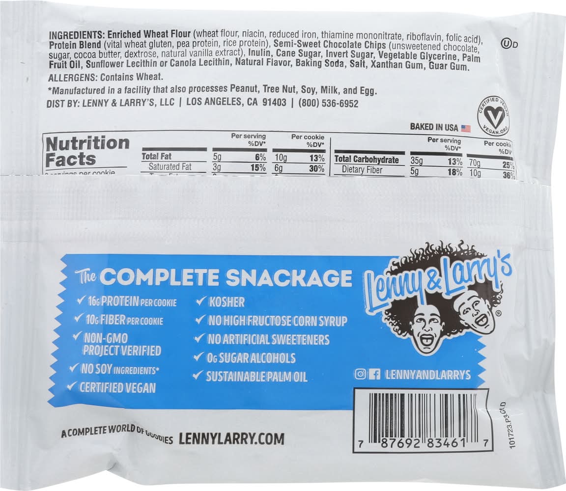 When you hear the word cookie", what's the first flavor to pop up in your head? Since 1936, chocolate chip has become the most iconic cookie flavor in America, thrilling both kids and adults alike. At Lenny and Larry's, The Chocolate Chip Complete Cookie has been a crowd-pleaser since the day we set up shop. Satisfyingly firm and chewy, our delectable plant-based protein chocolate chip cookie is lovingly sprinkled with sizeable semi-sweet morsels of chocolate throughout. Keep with tradition by Flavor: Chocolate chip