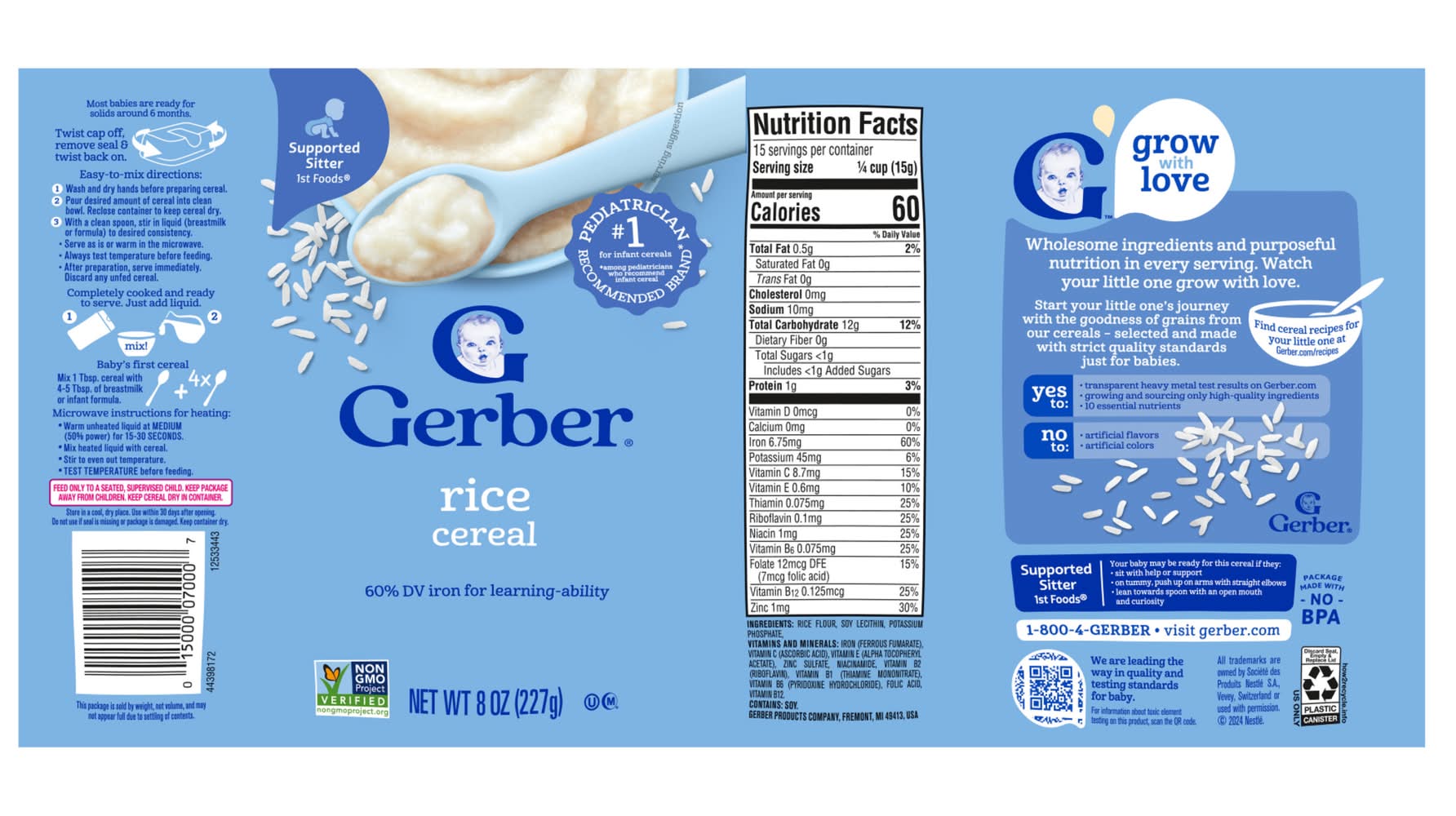 Gerber Rice Cereal Baby Food, Stage 1 (8 oz)