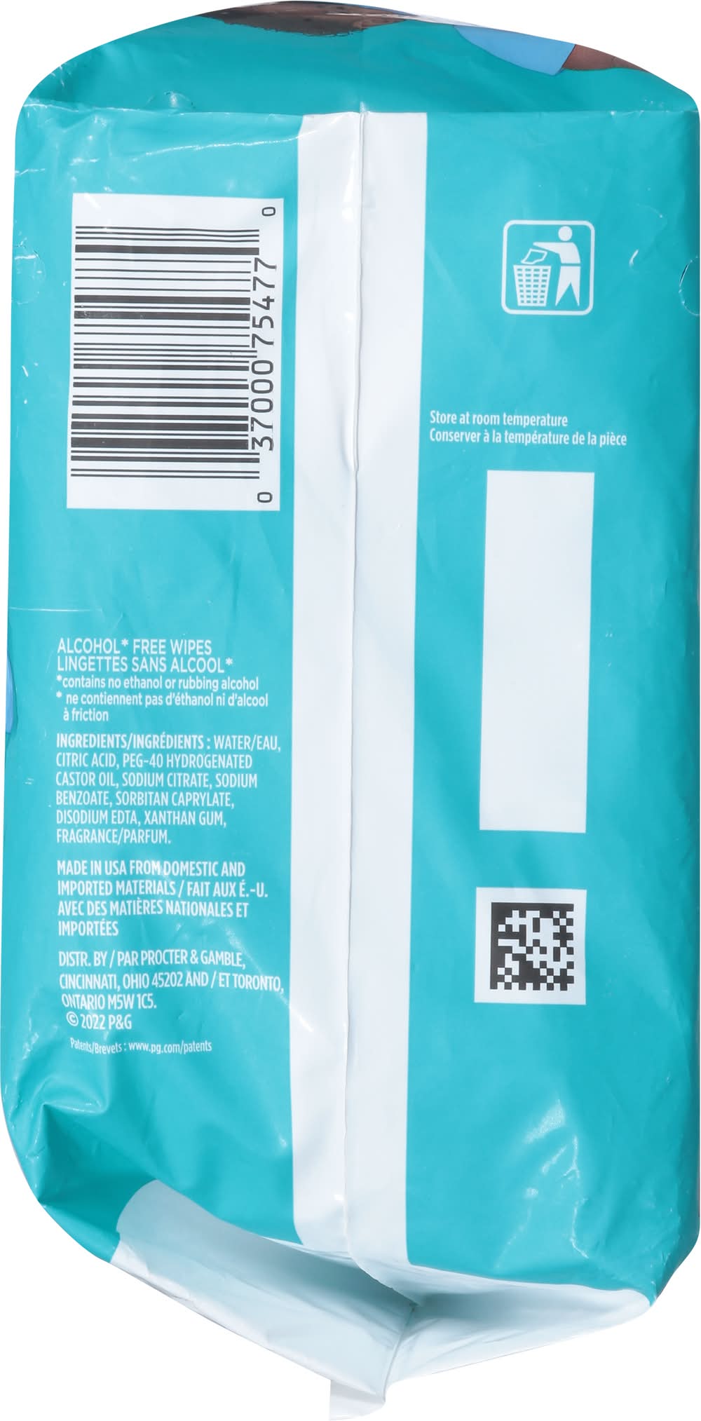 Alcohol free wipes (Contains no ethanol or rubbing alcohol. Hypoallergenic. Package liners are not intended for individual retail sale. • Size: 7.0x6.8 in • Procter & Gamble, Cincinnati, OH, 45202
