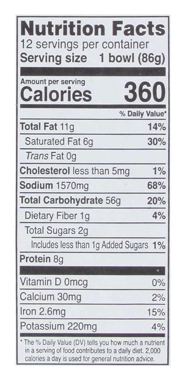 Ingredients: Enriched Wheat Flour (Wheat Flour, Niacin, Reduced Iron, Thiamine Mononitrate, Riboflavin, Folic Acid), Palm Oil, Potato Starch, Modified Potato Starch, Salt, Maltodextrin, Contains Less than 2% of: Black Pepper (Powdered), Chicken Bone Extract (Powdered), Citric Acid, Clam Extract (Powdered), Cuttlefish Extract (Powdered), Defatted Soy Flour, Dextrose, Disodium Guanylate, Disodium Inosinate, Disodium Succinate, Dried Green Onion, Freeze Dried Flakes (Shrimp, Peas), Garlic (Powdered), Gum Arabic, High Fructose Corn Syrup, Hydrolyzed Soy Protein, Modified Tapioca Starch, Mussel Extract (Powdered), Natural Flavors (Crab, Shrimp), Onion (Powdered), Oyster Extract (Powdered), Polyglycerol Esters of Fatty Acids, Potassium Carbonate, Red Chili Pepper (Powdered), Riboflavin (Color), Rice Flour, Sea Squirt Extract (Powdered), Sodium Carbonate, Sodium Phosphates, Soy Lecithin, Sugar, Tapioca Starch, Tocopherols (Antioxidant), Tuna Extract (Powdered), Xanthan Gum, Yeast Extract, Yellow Corn Flour Contains: Fish, Soybeans, Wheat, Milk