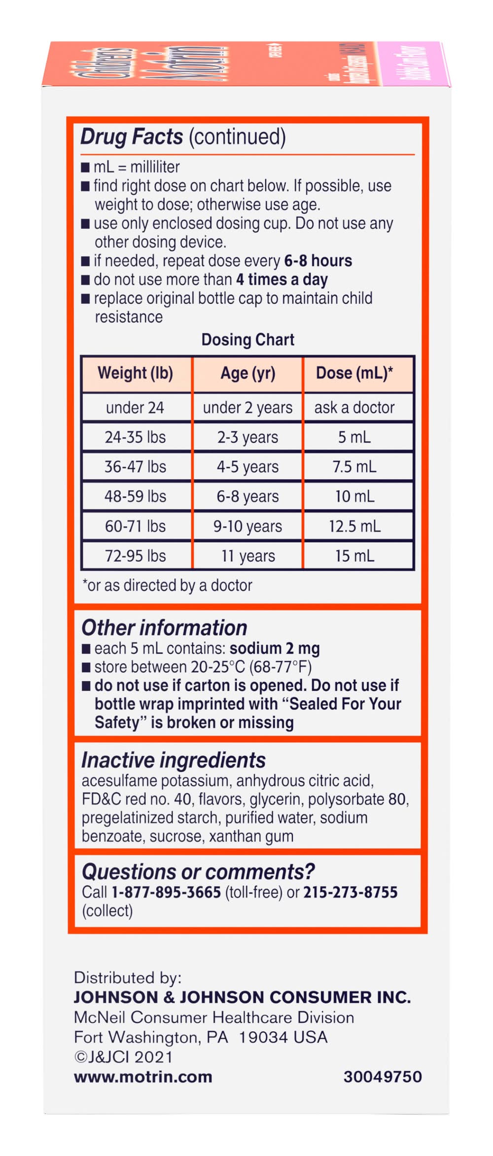 Children's Motrin Oral Suspension, Bubble Gum Johnson & Johnson Consumer, Fort Washington, PA, 19034, USA