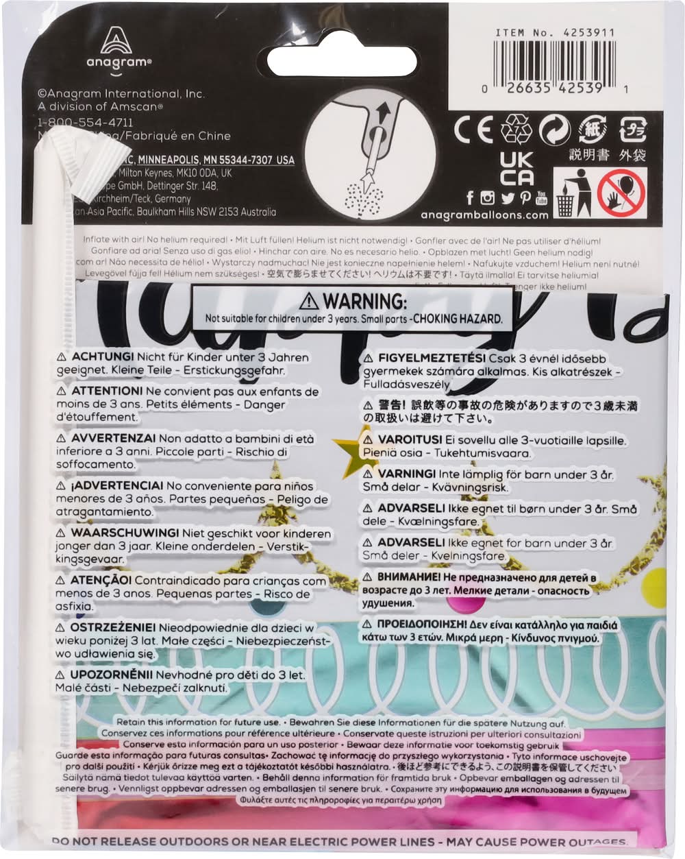 Item comes in original package, non-inflated, when purchased in store, Same Day Pickup or Same Day Delivery. Customers are responsible to fill balloon with air. Decorative Balloon. Inflate with air! No helium required! Self sealing. Includes 1 straw. Made in China • Color: Multicolor • Size: 14x18 in