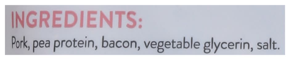 Ingredients: Pork, Pea Protein, Bacon, Vegetable Glycerin, Salt