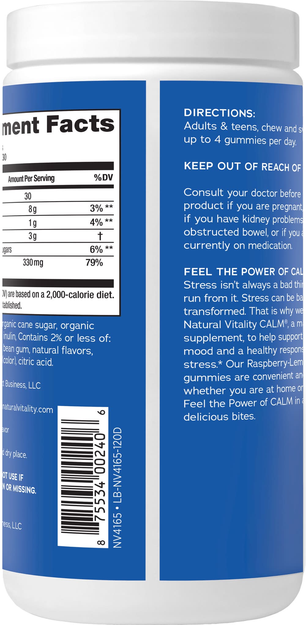 Enjoy a wave of calmfulness with Natural Vitality CALM Raspberry-Lemon Gummies. When life is full and fast-paced, it can be a beautiful thing. These delicious, easy-to-take CALM gummies help you stay grounded while you go with the flow. Each gummy has a bright, citrusy raspberry-lemon flavor and provides highly absorbable magnesium citrate. CALM gummies do more than taste good - they replenish the essential mineral magnesium to help you feel centered from the inside out.* Whether you're at home Nutranext Business, Llc, NC, 27701
