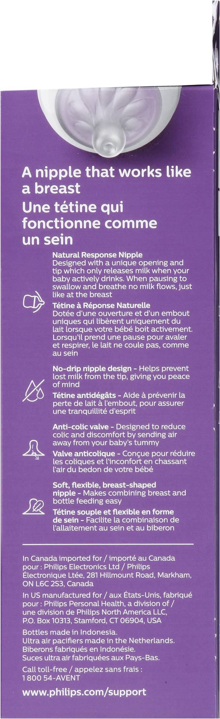 Usage of instructions:choose the right flow - natural response nipples are available in different flow rates, to keep up with your baby's growth. we recommend replacing nipples every 3 months for hygiene reasons. use the philips avent natural bottles only with philips avent natural nipples. we recommend replacing pacifiers every month for hygiene reasons. - directions: choose the right flow - natural response nipples are available in different flow rates, to keep up with your baby's growth. we recommend replacing nipples every 3 months for hygiene reasons. use the philips avent natural bottles only with philips avent natural nipples. we recommend replacing pacifiers every month for hygiene reasons.